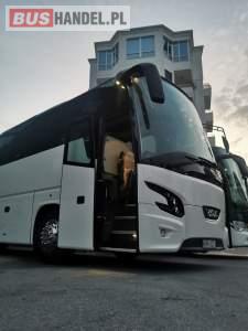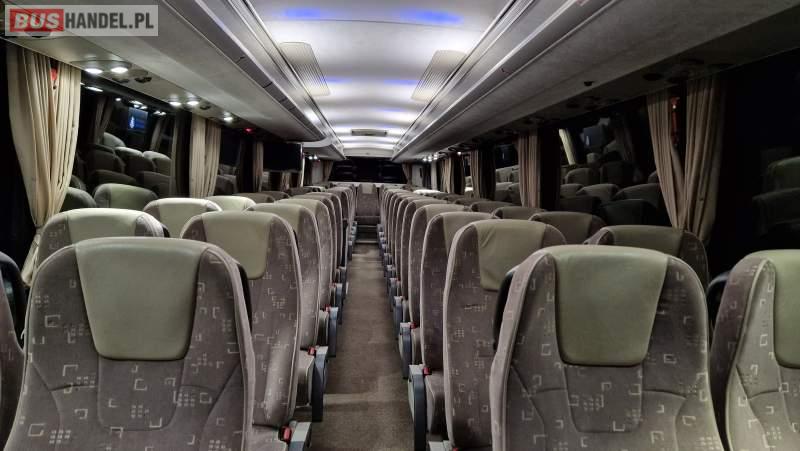 : WC, lodówka, kabina sypialna, fotele odchylane, oświetlenie indywidualne, siateczki, ABS, ASR, tempomat, retarder, telefon, CD, podnóżki, stoliczki, mikrofon, klimatyzacja, radio, regulacja wysokości nadwozia, podwójne szyby boczne, wspomaganie kierownicy, elektryczne lusterka, fotele odchylane i rozsuwane, DVD, ogrzewanie stacjonarne
