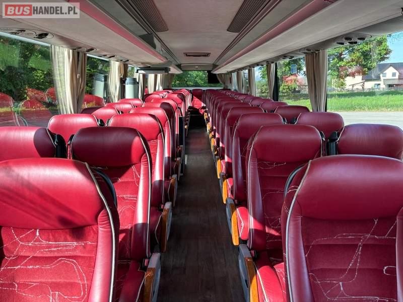 : WC, lodówka, kabina sypialna, oświetlenie indywidualne, nawiewy dyszowe, siateczki, ABS, ASR, tempomat, retarder, CD, podnóżki, stoliczki, mikrofon, klimatyzacja, radio, sejf, regulacja wysokości nadwozia, podwójne szyby boczne, wspomaganie kierownicy, elektryczne lusterka, fotele odchylane i rozsuwane, DVD, ogrzewanie stacjonarne, ESP