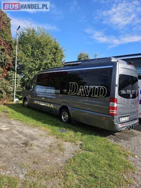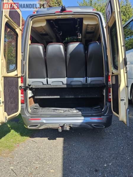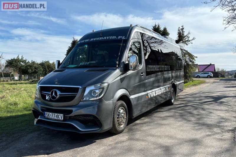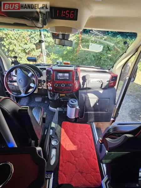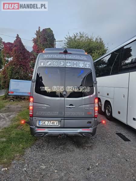 Mercedes-Benz 519, luksusowy mini-autokar (23+1) Nowoczesny, bardzo komfortowy autobus z silnikiem 3. 0 V6 (190 KM), Euro 6, z przebiegiem 179 930 km, automatyczna skrzynia biegów, pierwszy właściciel. Najważniejsze atuty: Zabudowa Auto Cuby – konfiguracja 23+1, pojemna lodówka, ekspres do kawy/podgrzewacz wody (Cafe Bar) Przedłużany i powiększony bagażnik + kufry boczne Tylna kanapa przesuwana i bagażnik o 80 cm większy Skórzane, przesuwane fotele (z możliwością przesunięcia kanapy do środka korytarza) – pasy biodrowe na wszystkich siedzeniach Zawieszenie tylne na poduszkach. Klimatyzacja strefowa 11 kW Webasto + ogrzewanie postojowe oraz konwektorowe System audio/video/DVD, mikrofon, GPS, Pakiet AMG Perfekcyjny stan techniczny i wizualny – użytkowany wyłącznie w turystyce, garażowany TELEFON ENG: 885 440 444 Sprzedający: