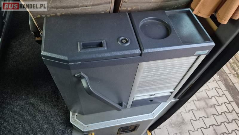 : lodówka, caffebar, fotele odchylane, oświetlenie indywidualne, nawiewy dyszowe, siateczki, ABS, ASR, retarder, CD, podnóżki, stoliczki, mikrofon, klimatyzacja, radio, regulacja wysokości nadwozia, podwójne szyby boczne, wspomaganie kierownicy, elektryczne lusterka, fotele odchylane i rozsuwane, DVD, ogrzewanie stacjonarne, ESP