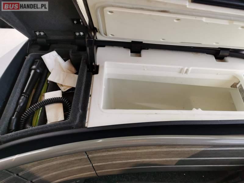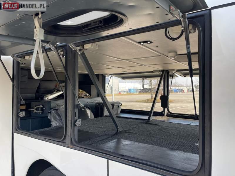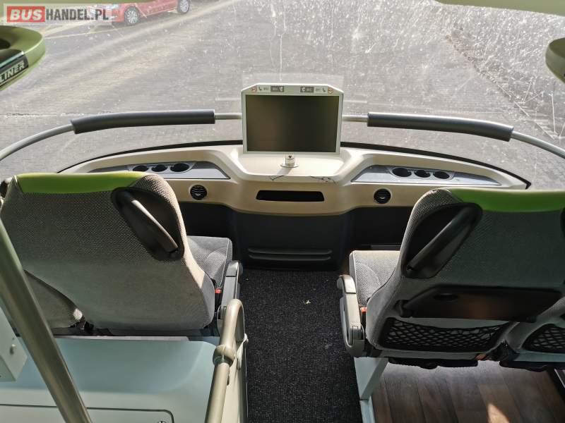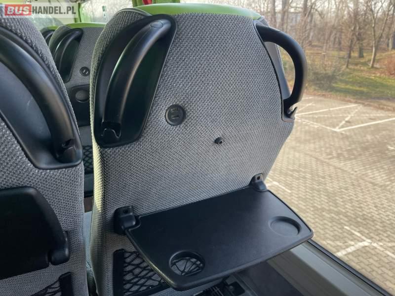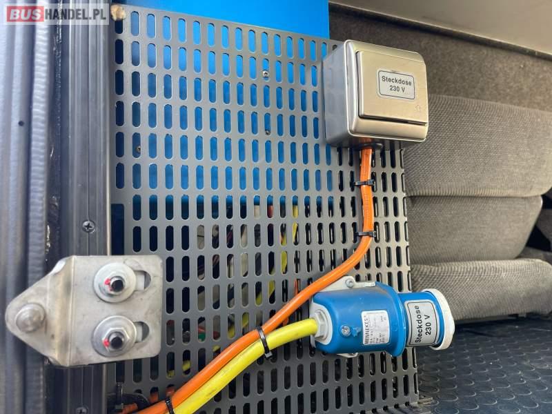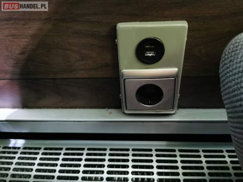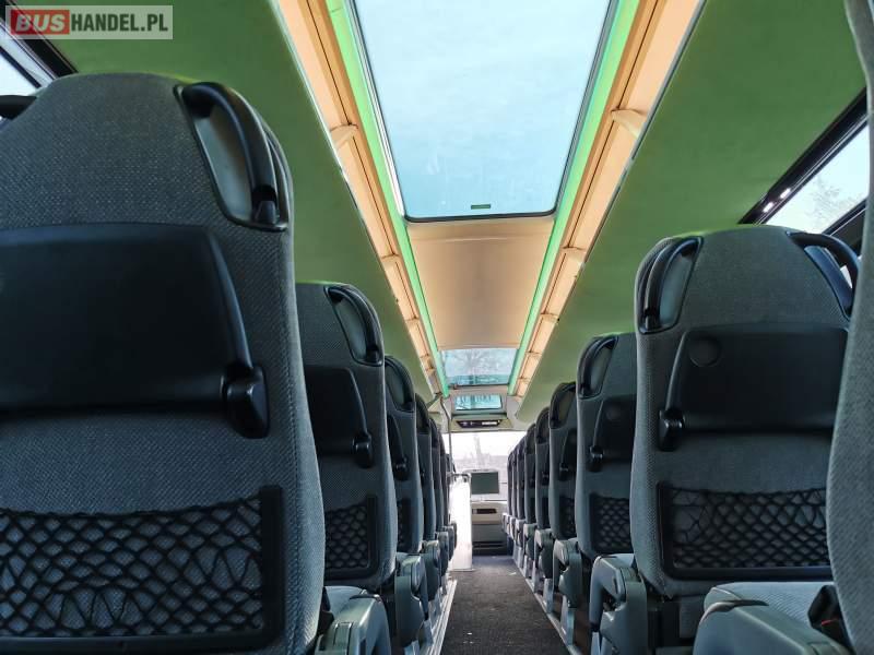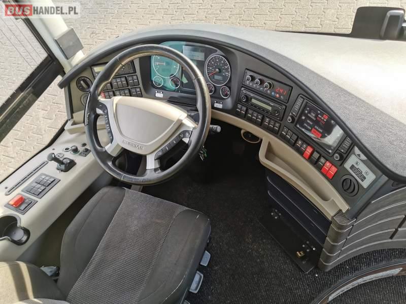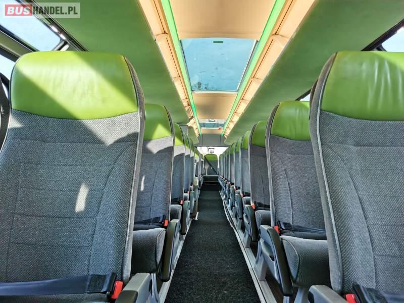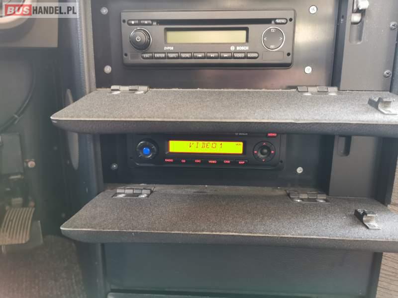 : video, WC, lodówka, caffebar, kabina sypialna, fotele odchylane, oświetlenie indywidualne, nawiewy dyszowe, siateczki, ABS, ASR, tempomat, retarder, telefon, nawigacja, CD, podnóżki, stoliczki, mikrofon, klimatyzacja, radio, kuchenka mikrofalowa, wyświetlacz matrix, rampa dla inwalidów, sejf, regulacja wysokości nadwozia, centralny zamek, podwójne szyby boczne, wspomaganie kierownicy, elektryczne lusterka, DVD, ogrzewanie stacjonarne, hak holowniczy, ESP