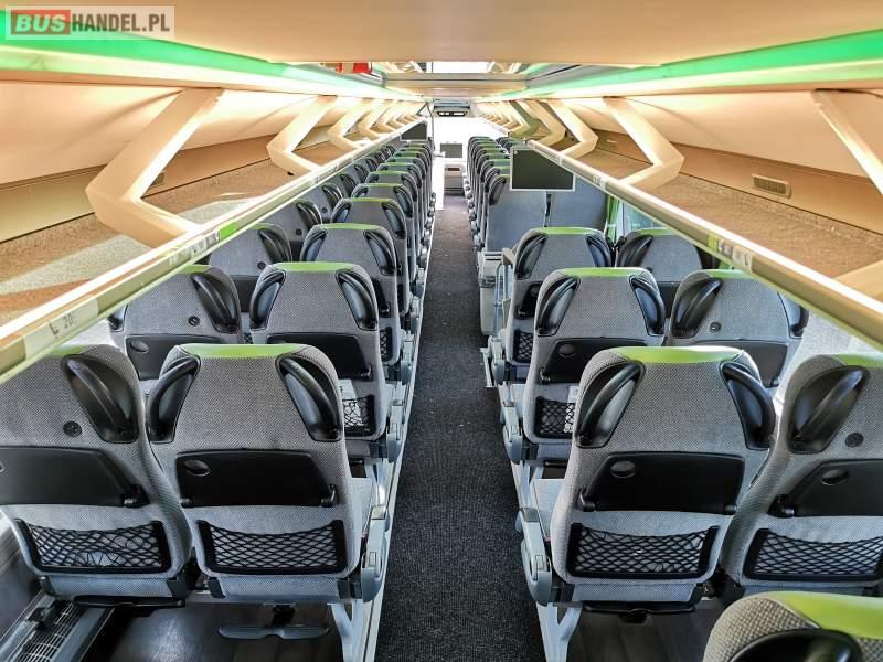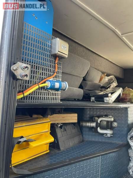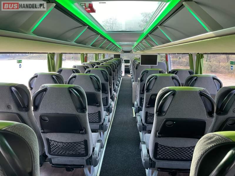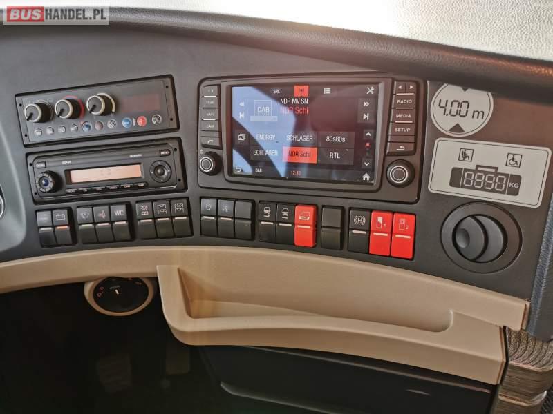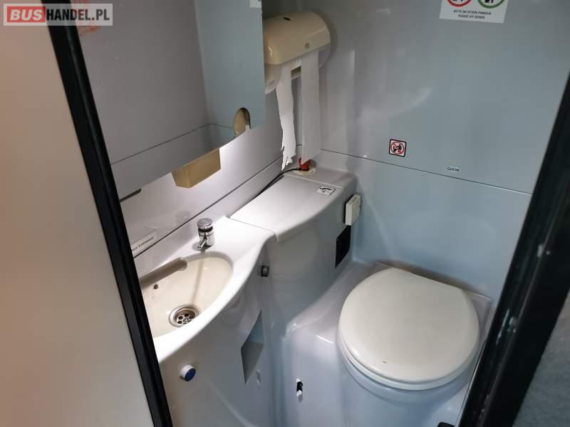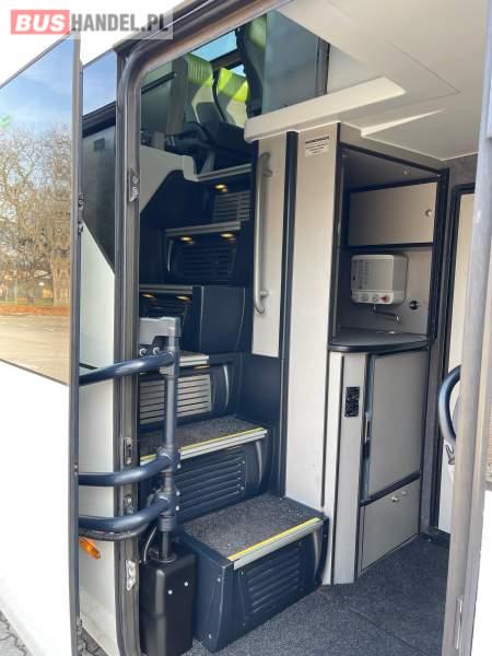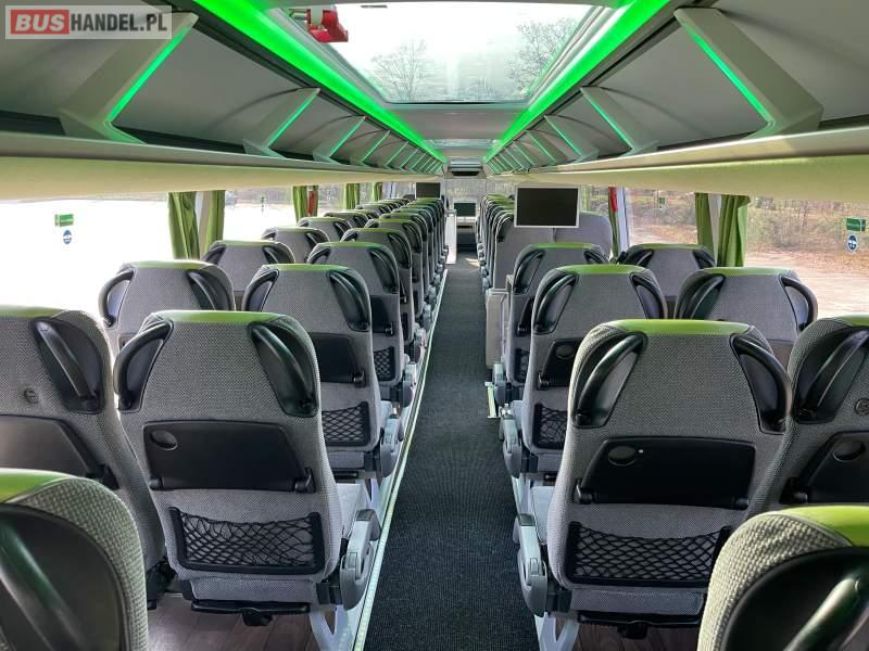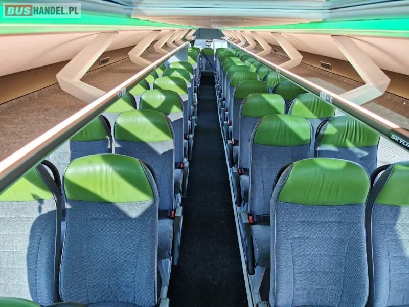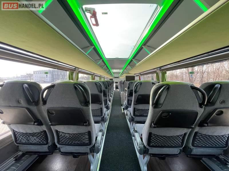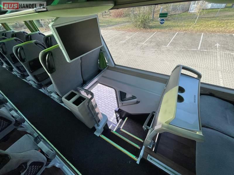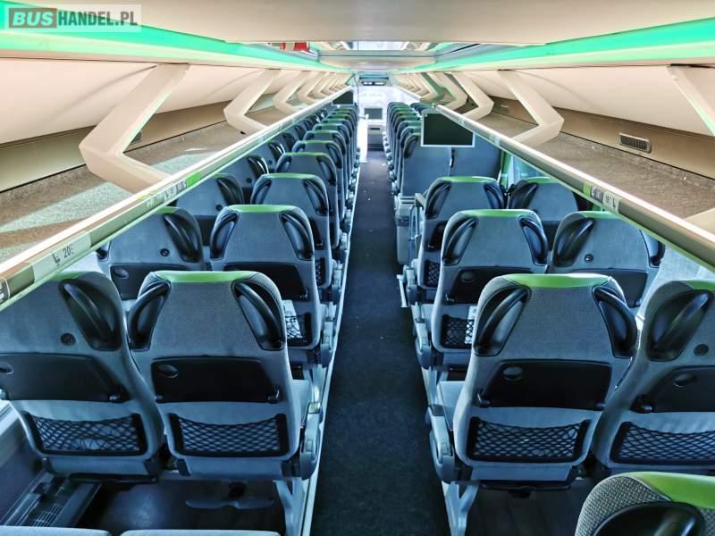 : video, WC, lodówka, caffebar, kabina sypialna, fotele odchylane, oświetlenie indywidualne, nawiewy dyszowe, siateczki, ABS, ASR, tempomat, retarder, telefon, nawigacja, CD, podnóżki, stoliczki, mikrofon, klimatyzacja, radio, kuchenka mikrofalowa, wyświetlacz matrix, rampa dla inwalidów, sejf, regulacja wysokości nadwozia, centralny zamek, podwójne szyby boczne, wspomaganie kierownicy, elektryczne lusterka, DVD, ogrzewanie stacjonarne, hak holowniczy, ESP