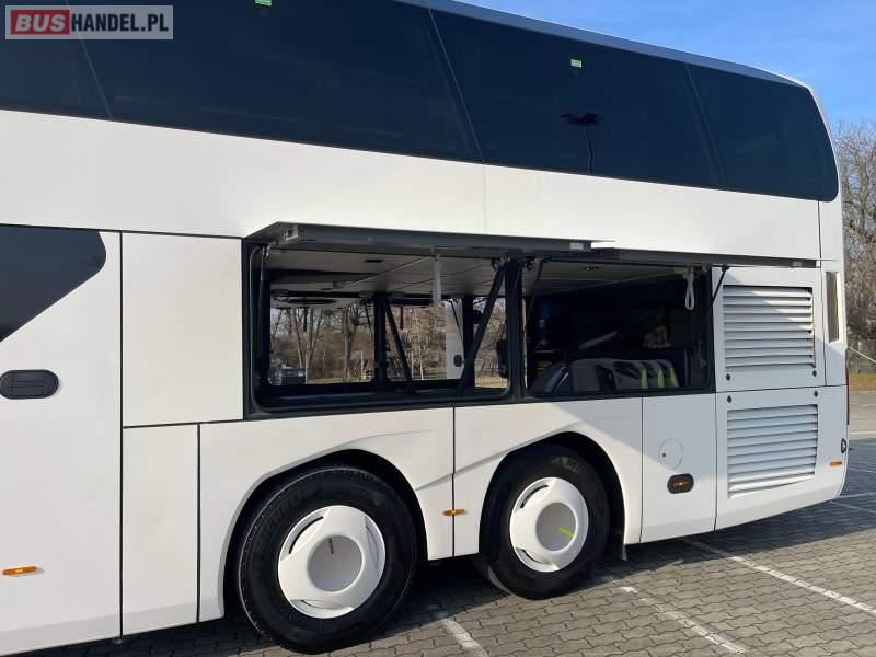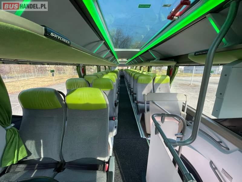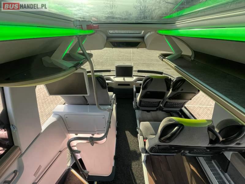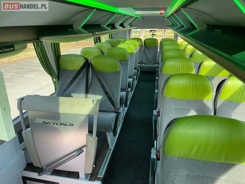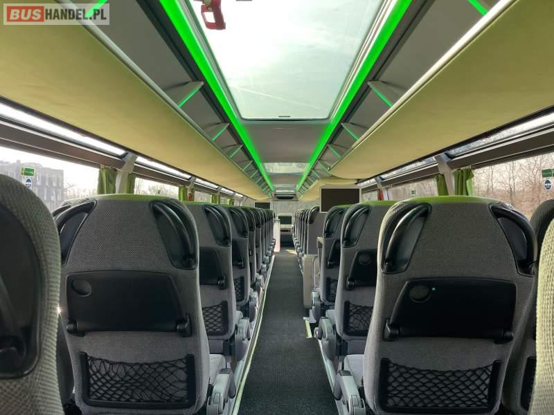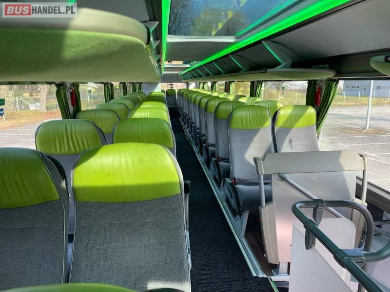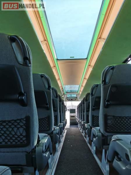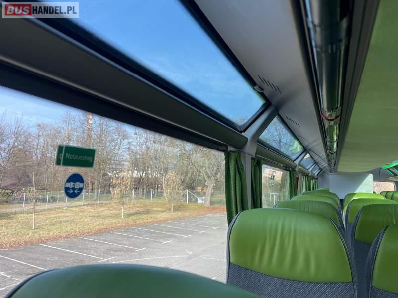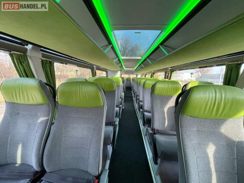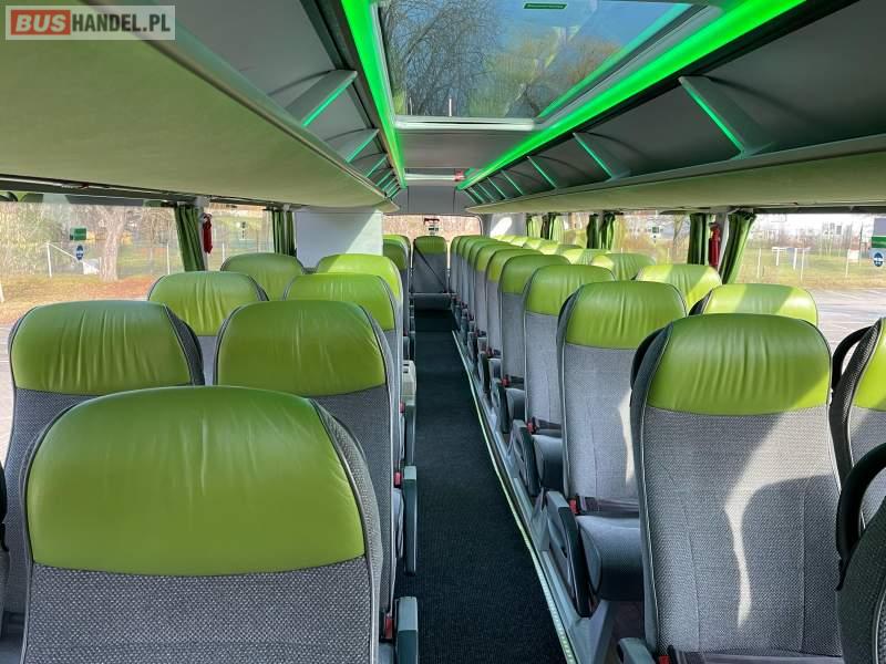 : video, WC, lodówka, caffebar, kabina sypialna, fotele odchylane, oświetlenie indywidualne, nawiewy dyszowe, siateczki, ABS, ASR, tempomat, retarder, telefon, nawigacja, CD, podnóżki, stoliczki, mikrofon, klimatyzacja, radio, kuchenka mikrofalowa, wyświetlacz matrix, rampa dla inwalidów, sejf, regulacja wysokości nadwozia, centralny zamek, podwójne szyby boczne, wspomaganie kierownicy, elektryczne lusterka, DVD, ogrzewanie stacjonarne, hak holowniczy, ESP