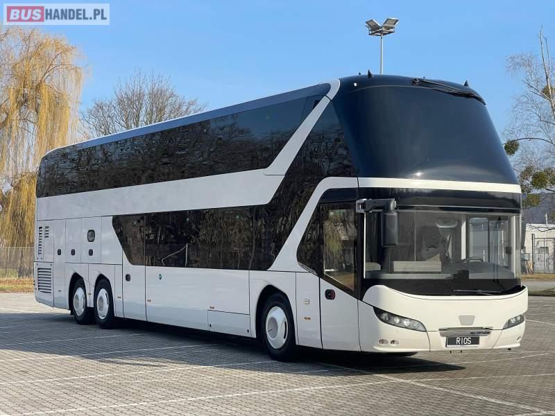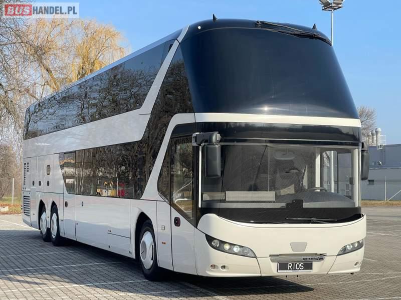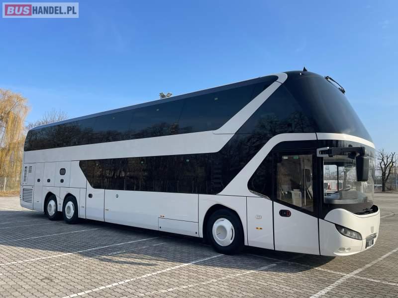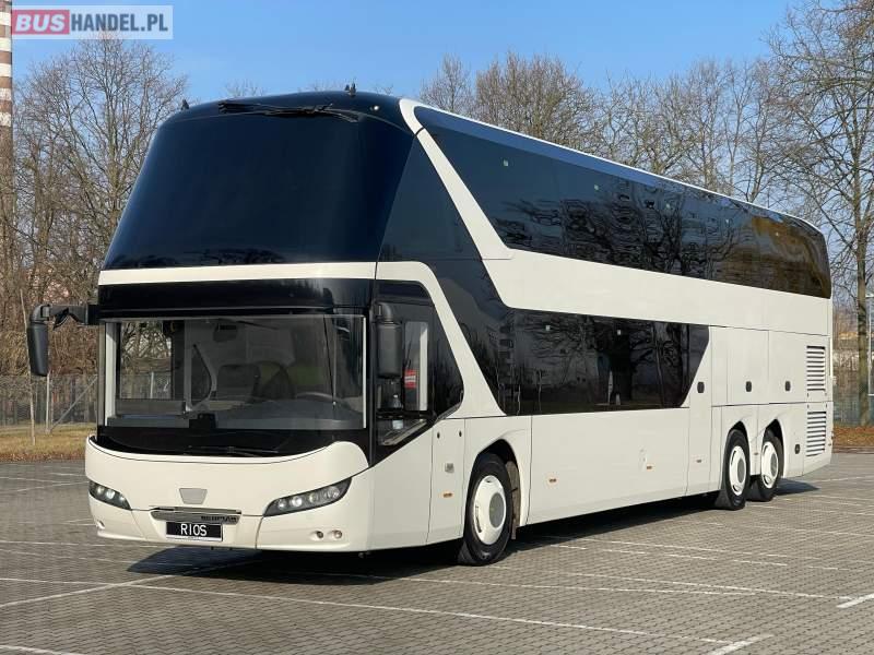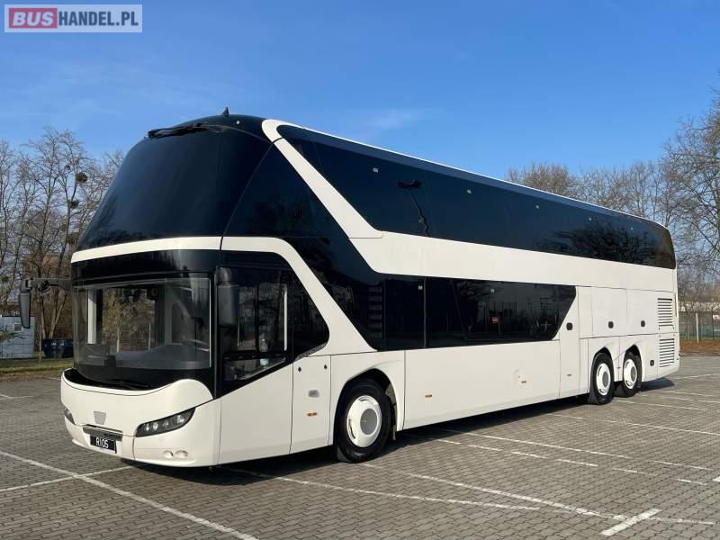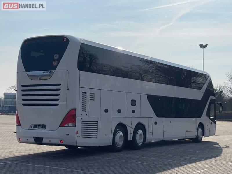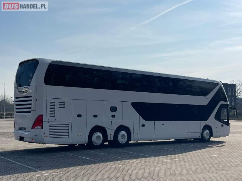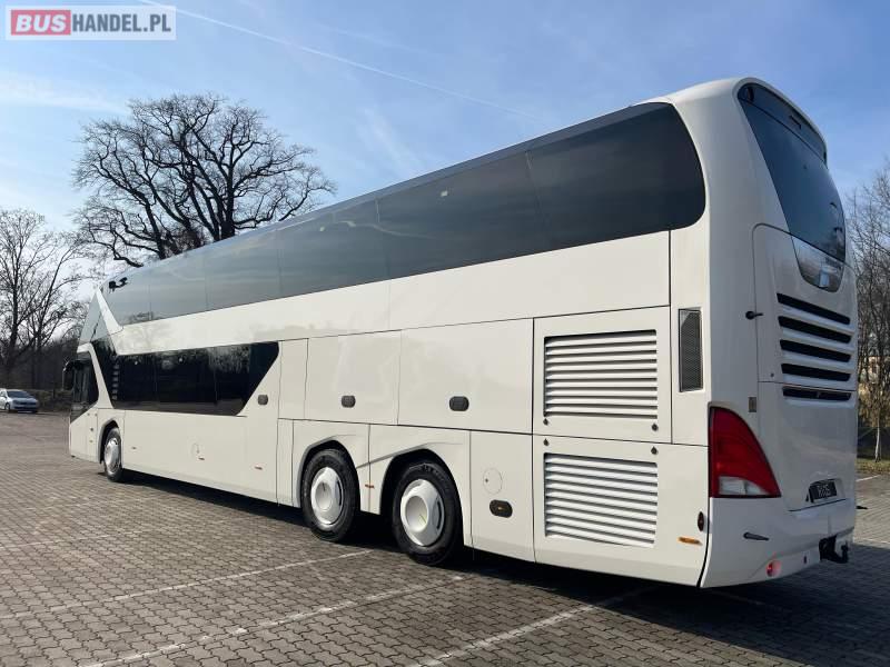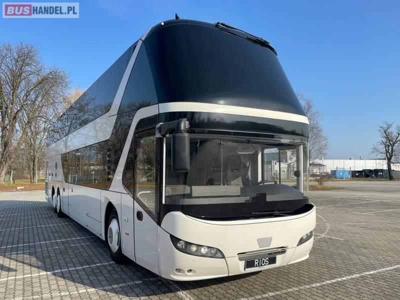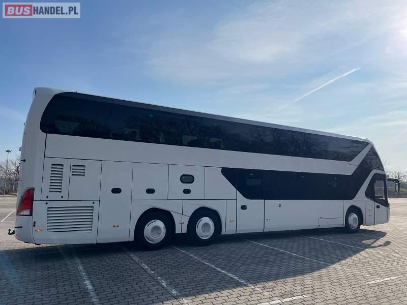 : video, WC, lodówka, caffebar, kabina sypialna, fotele odchylane, oświetlenie indywidualne, nawiewy dyszowe, siateczki, ABS, ASR, tempomat, retarder, telefon, nawigacja, CD, podnóżki, stoliczki, mikrofon, klimatyzacja, radio, kuchenka mikrofalowa, wyświetlacz matrix, rampa dla inwalidów, sejf, regulacja wysokości nadwozia, centralny zamek, podwójne szyby boczne, wspomaganie kierownicy, elektryczne lusterka, DVD, ogrzewanie stacjonarne, hak holowniczy, ESP