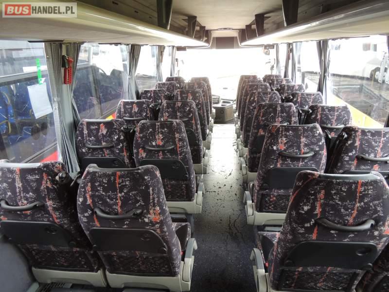 : video, WC, oświetlenie indywidualne, nawiewy dyszowe, ABS, ASR, tempomat, retarder, CD, mikrofon, klimatyzacja, radio, regulacja wysokości nadwozia, centralny zamek, podwójne szyby boczne, wspomaganie kierownicy, elektryczne lusterka, fotele odchylane i rozsuwane, DVD, ogrzewanie stacjonarne, ESP