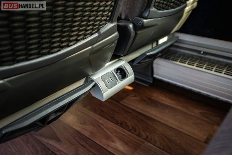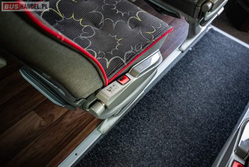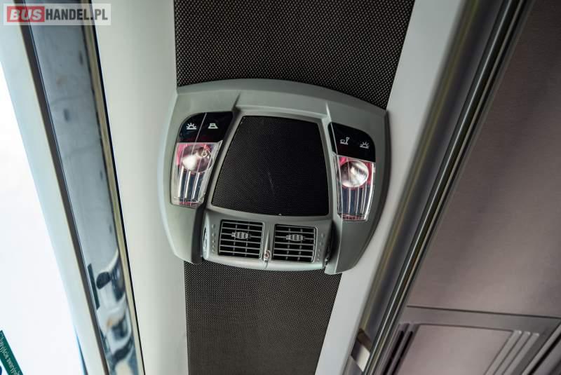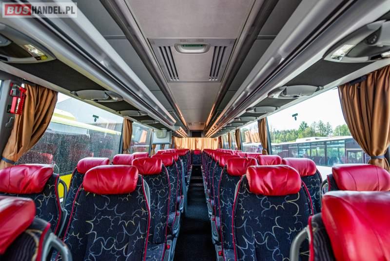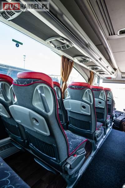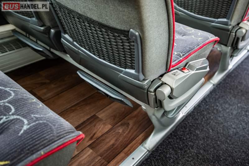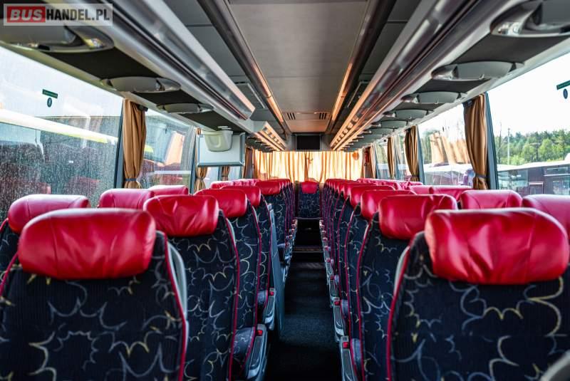 : video, WC, lodówka, caffebar, kabina sypialna, fotele odchylane, oświetlenie indywidualne, nawiewy dyszowe, siateczki, ABS, ASR, tempomat, retarder, telefon, nawigacja, CD, podnóżki, stoliczki, mikrofon, klimatyzacja, radio, sejf, regulacja wysokości nadwozia, centralny zamek, podwójne szyby boczne, wspomaganie kierownicy, elektryczne lusterka, fotele odchylane i rozsuwane, DVD, ogrzewanie stacjonarne, hak holowniczy, ESP