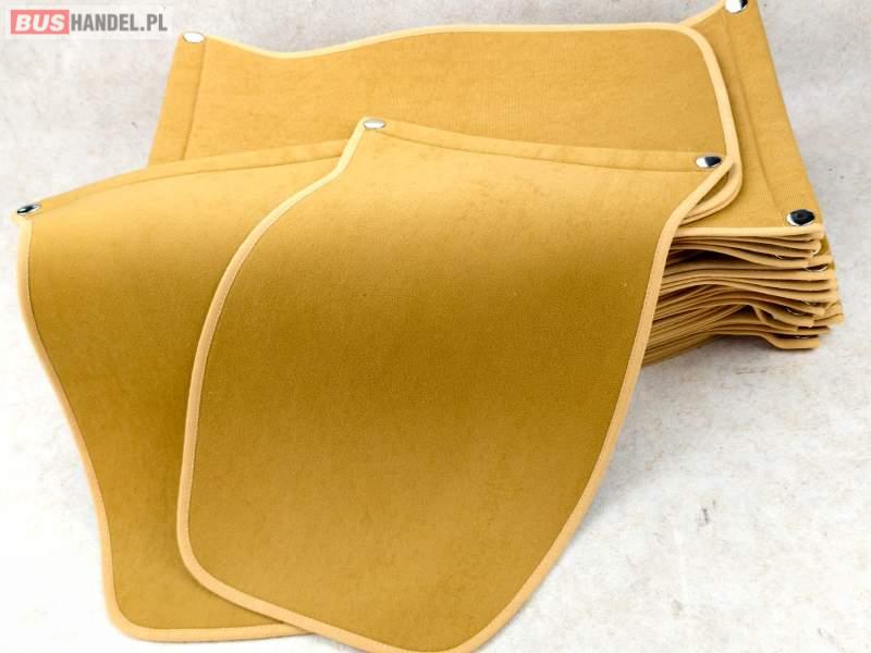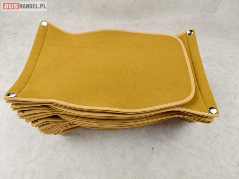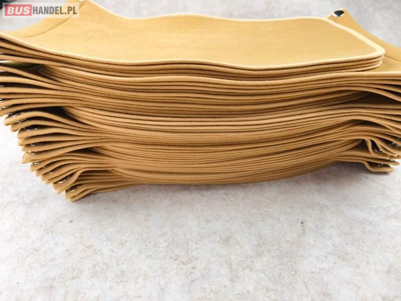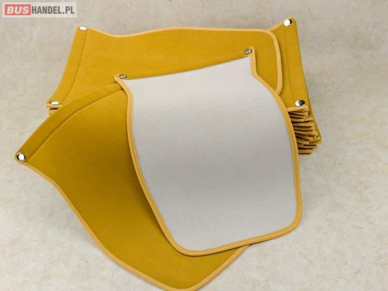 Zagłówki autobusowe, szyte na wymiar, kształt RYBKI, przedłużane i zwężane, mocowane na NAPY, dostosowane kształtem do wymiarów foteli autobusowych Sprzedający: