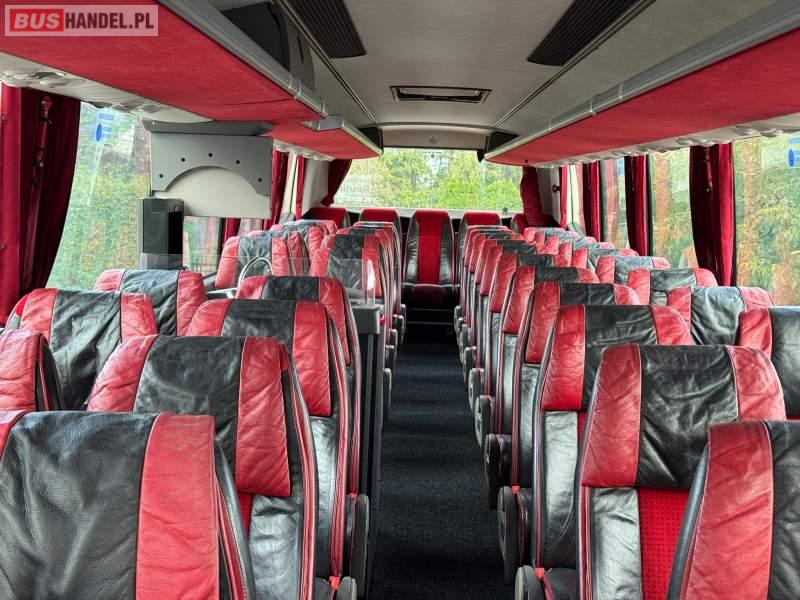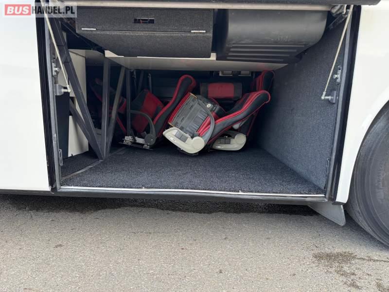 : WC, lodówka, caffebar, kabina sypialna, fotele odchylane, oświetlenie indywidualne, nawiewy dyszowe, siateczki, ABS, ASR, tempomat, retarder, podnóżki, stoliczki, mikrofon, klimatyzacja, radio, regulacja wysokości nadwozia, centralny zamek, podwójne szyby boczne, wspomaganie kierownicy, elektryczne lusterka, DVD, ogrzewanie stacjonarne, ESP