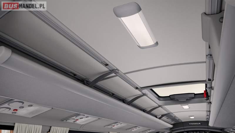 : oświetlenie indywidualne, nawiewy dyszowe, siateczki, ABS, ASR, tempomat, retarder, CD, stoliczki, klimatyzacja, radio, rampa dla inwalidów, regulacja wysokości nadwozia, centralny zamek, podwójne szyby boczne, wspomaganie kierownicy, elektryczne lusterka, fotele odchylane i rozsuwane, ogrzewanie stacjonarne, ESP
