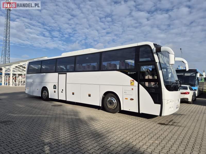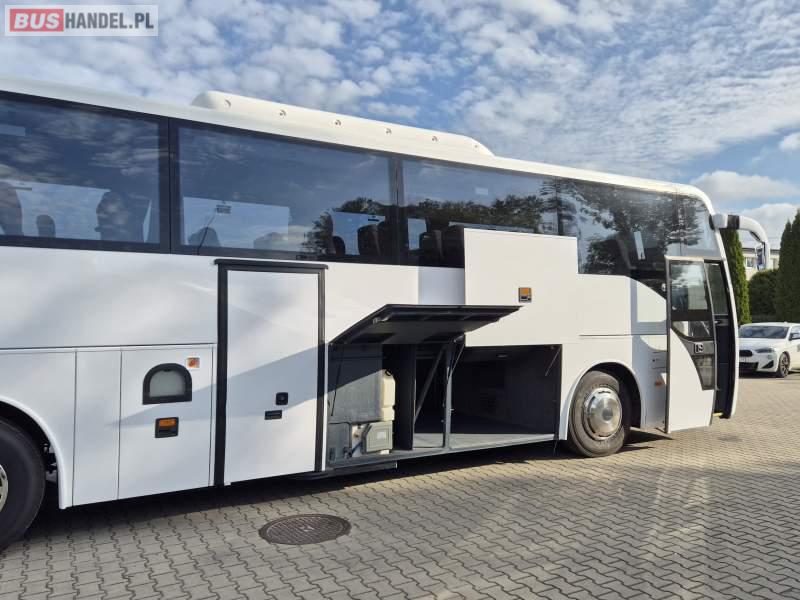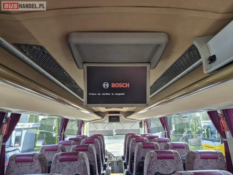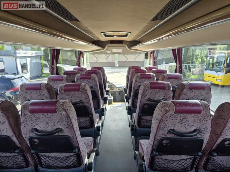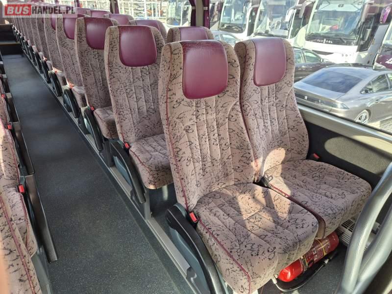 : video, WC, lodówka, fotele odchylane, oświetlenie indywidualne, siateczki, ABS, retarder, podnóżki, stoliczki, mikrofon, klimatyzacja, radio, regulacja wysokości nadwozia, centralny zamek, podwójne szyby boczne, wspomaganie kierownicy, elektryczne lusterka, DVD, ogrzewanie stacjonarne
