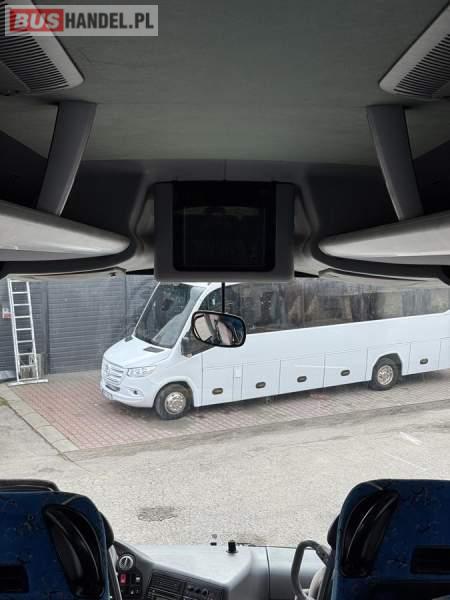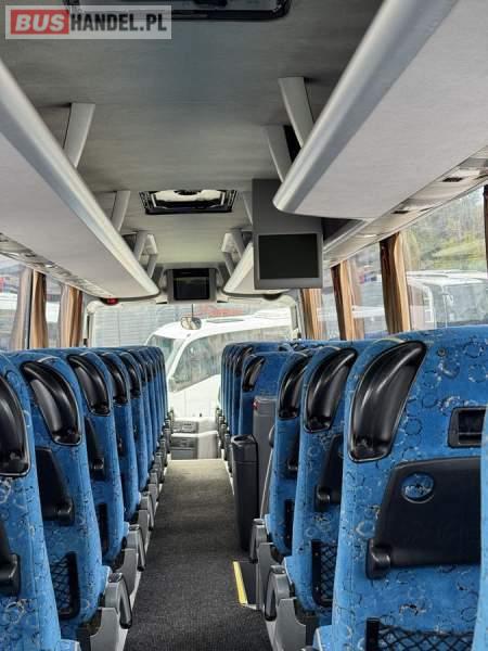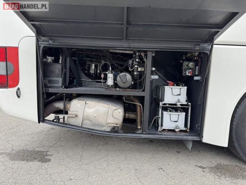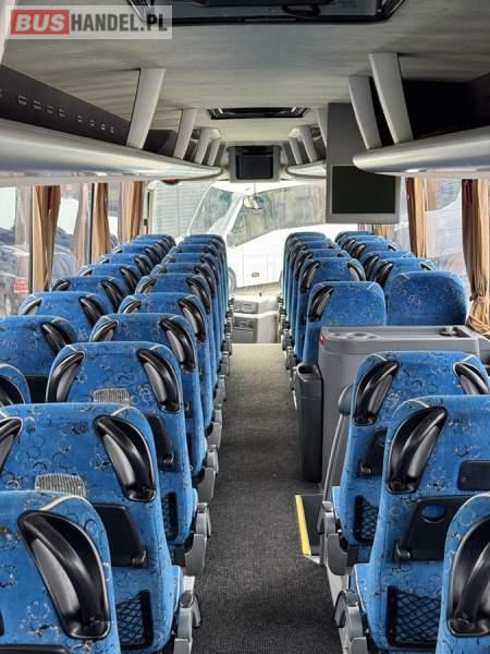 : lodówka, fotele odchylane, oświetlenie indywidualne, nawiewy dyszowe, siateczki, ABS, ASR, tempomat, retarder, podnóżki, stoliczki, mikrofon, klimatyzacja, radio, sejf, regulacja wysokości nadwozia, centralny zamek, podwójne szyby boczne, wspomaganie kierownicy, elektryczne lusterka, DVD, ogrzewanie stacjonarne