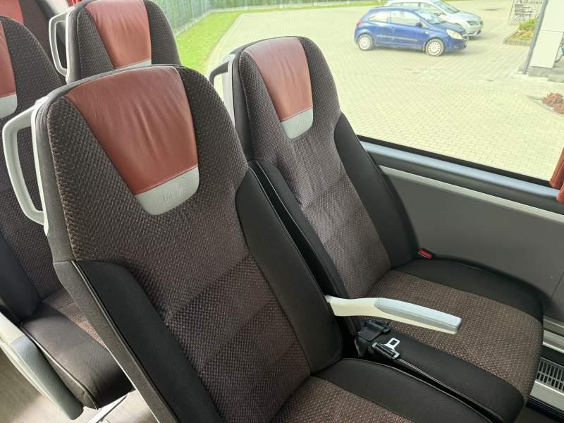 : WC, lodówka, kabina sypialna, oświetlenie indywidualne, nawiewy dyszowe, siateczki, tempomat, retarder, stoliczki, mikrofon, klimatyzacja, radio, rampa dla inwalidów, regulacja wysokości nadwozia, podwójne szyby boczne, wspomaganie kierownicy, elektryczne lusterka, ogrzewanie stacjonarne