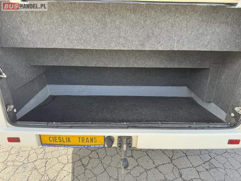 : oświetlenie indywidualne, nawiewy dyszowe, siateczki, ABS, ASR, tempomat, retarder, stoliczki, mikrofon, klimatyzacja, radio, centralny zamek, podwójne szyby boczne, wspomaganie kierownicy, elektryczne lusterka, fotele odchylane i rozsuwane, ogrzewanie stacjonarne, hak holowniczy, ESP