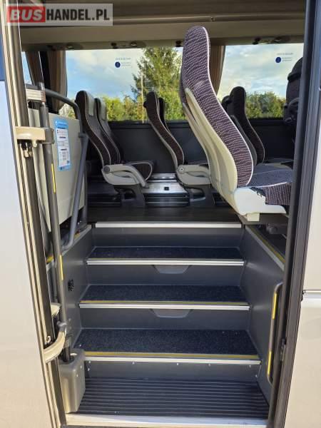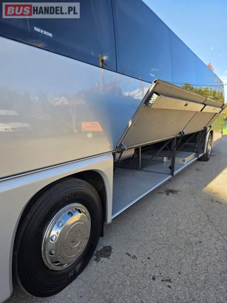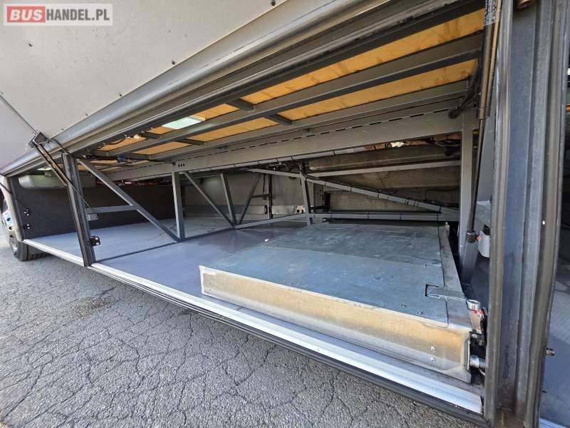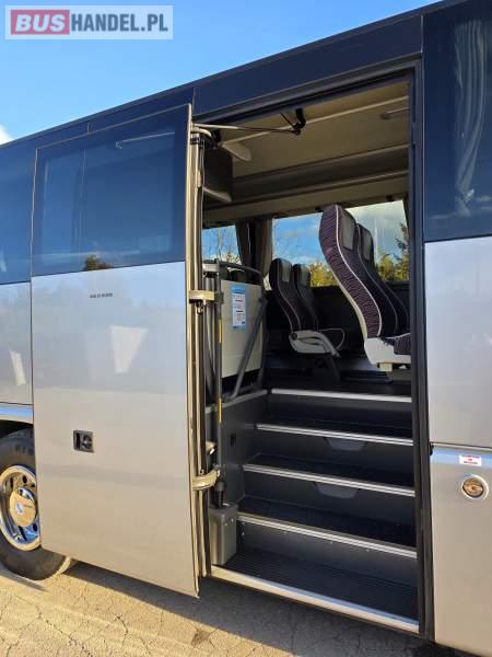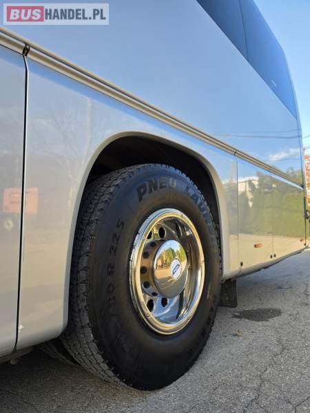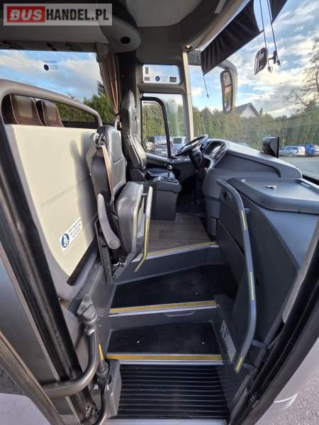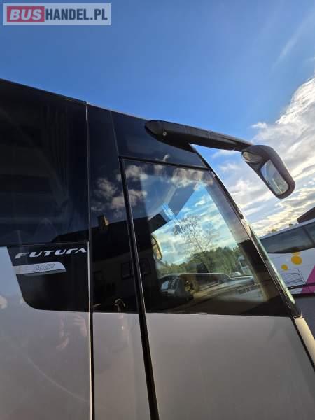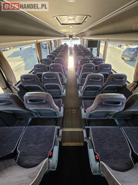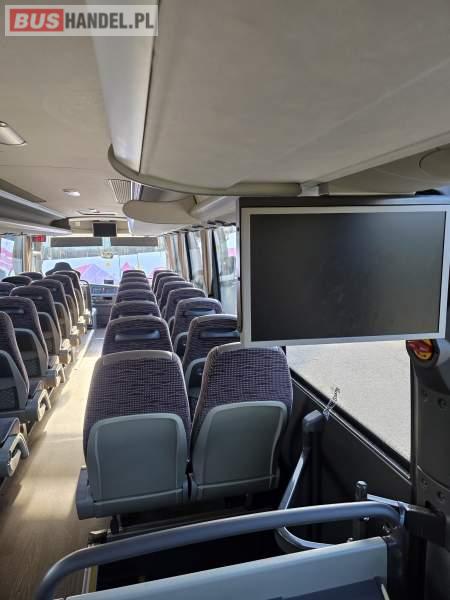 : lodówka, fotele odchylane, oświetlenie indywidualne, nawiewy dyszowe, siateczki, ABS, ASR, tempomat, retarder, podnóżki, stoliczki, mikrofon, klimatyzacja, radio, sejf, regulacja wysokości nadwozia, centralny zamek, podwójne szyby boczne, wspomaganie kierownicy, elektryczne lusterka, DVD, ogrzewanie stacjonarne, ESP