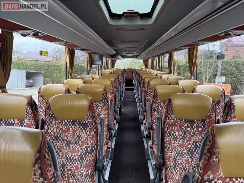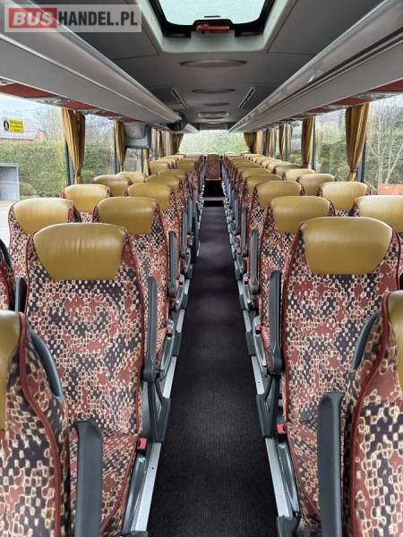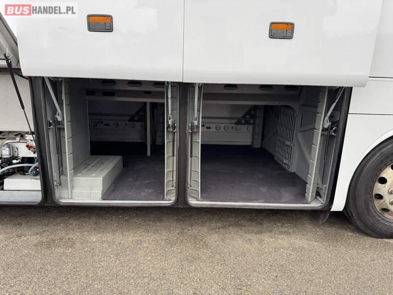 : WC, lodówka, kabina sypialna, oświetlenie indywidualne, nawiewy dyszowe, siateczki, ABS, ASR, tempomat, retarder, podnóżki, stoliczki, mikrofon, klimatyzacja, radio, sejf, regulacja wysokości nadwozia, centralny zamek, podwójne szyby boczne, wspomaganie kierownicy, elektryczne lusterka, fotele odchylane i rozsuwane, DVD, ogrzewanie stacjonarne, ESP