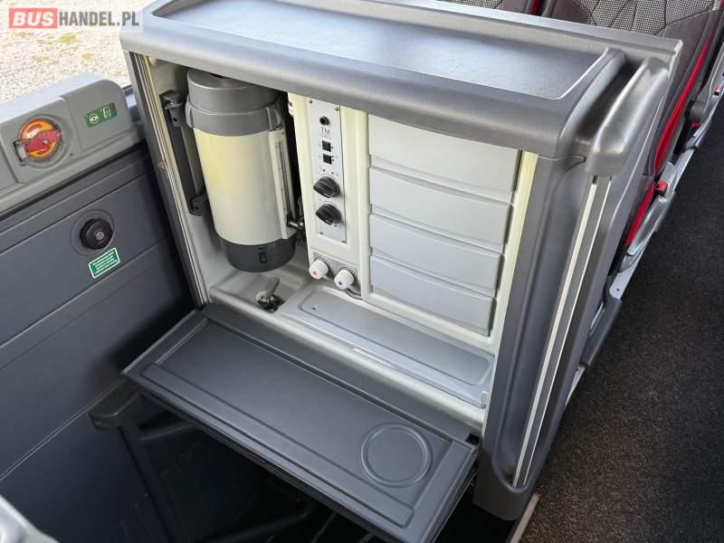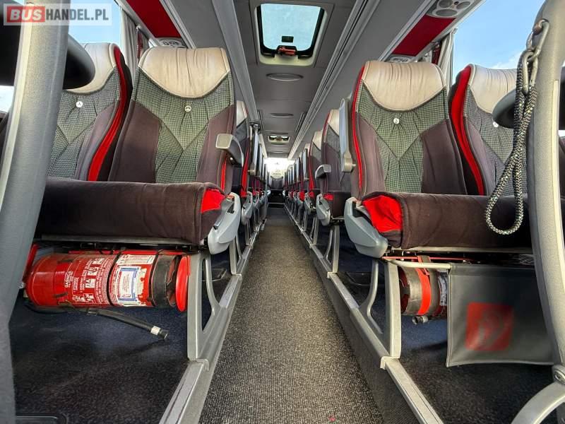 : video, WC, lodówka, caffebar, kabina sypialna, oświetlenie indywidualne, nawiewy dyszowe, siateczki, ABS, ASR, tempomat, retarder, CD, podnóżki, stoliczki, mikrofon, klimatyzacja, radio, regulacja wysokości nadwozia, centralny zamek, podwójne szyby boczne, wspomaganie kierownicy, elektryczne lusterka, fotele odchylane i rozsuwane, DVD, ogrzewanie stacjonarne, ESP