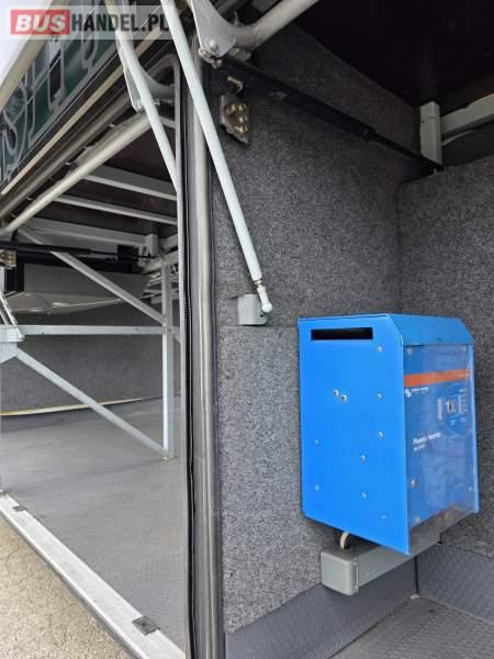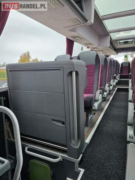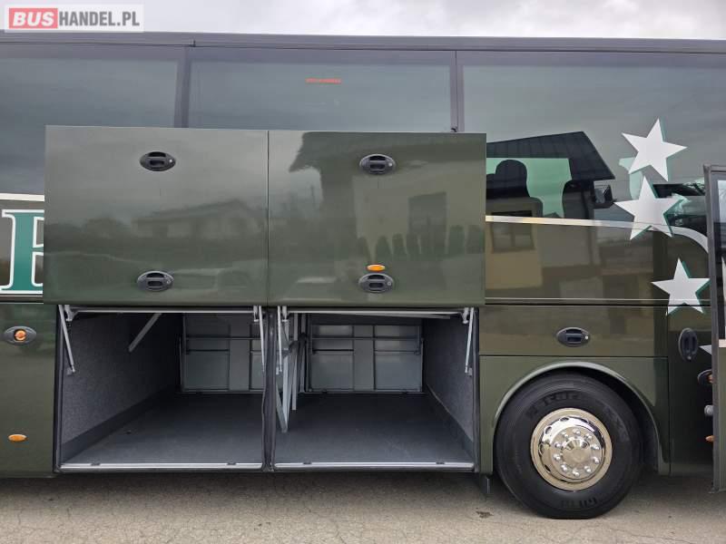 : WC, lodówka, caffebar, kabina sypialna, oświetlenie indywidualne, nawiewy dyszowe, siateczki, ABS, ASR, tempomat, retarder, podnóżki, stoliczki, mikrofon, klimatyzacja, radio, sejf, regulacja wysokości nadwozia, centralny zamek, podwójne szyby boczne, wspomaganie kierownicy, elektryczne lusterka, fotele odchylane i rozsuwane, DVD, ogrzewanie stacjonarne