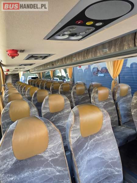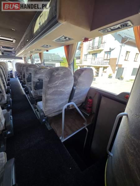 : WC, lodówka, caffebar, fotele odchylane, oświetlenie indywidualne, nawiewy dyszowe, siateczki, ABS, ASR, tempomat, retarder, podnóżki, stoliczki, mikrofon, klimatyzacja, radio, sejf, regulacja wysokości nadwozia, centralny zamek, podwójne szyby boczne, wspomaganie kierownicy, elektryczne lusterka, DVD, ogrzewanie stacjonarne