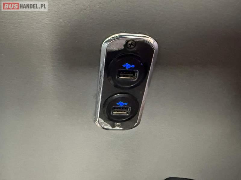 : video, WC, lodówka, oświetlenie indywidualne, nawiewy dyszowe, siateczki, ABS, ASR, tempomat, retarder, CD, podnóżki, stoliczki, mikrofon, klimatyzacja, radio, regulacja wysokości nadwozia, centralny zamek, podwójne szyby boczne, wspomaganie kierownicy, elektryczne lusterka, aluminiowe felgi, fotele odchylane i rozsuwane, DVD, ogrzewanie stacjonarne, ESP