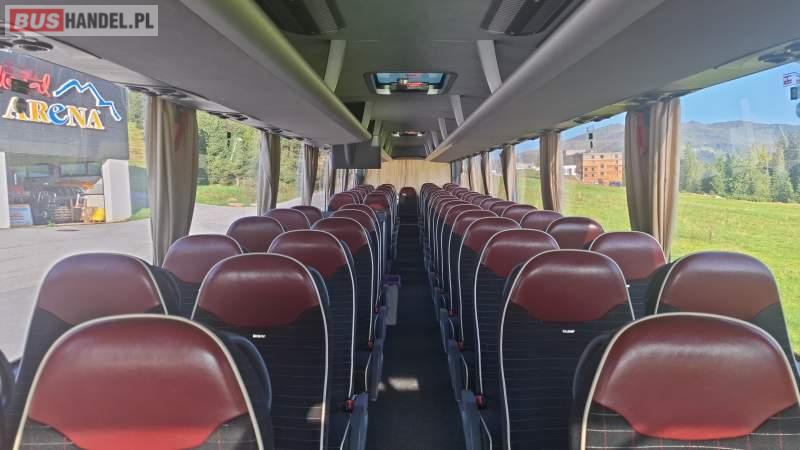 : video, WC, lodówka, caffebar, kabina sypialna, oświetlenie indywidualne, ABS, ASR, tempomat, retarder, nawigacja, CD, podnóżki, stoliczki, mikrofon, klimatyzacja, radio, kuchenka mikrofalowa, sejf, regulacja wysokości nadwozia, centralny zamek, podwójne szyby boczne, wspomaganie kierownicy, elektryczne lusterka, fotele odchylane i rozsuwane, DVD, ogrzewanie stacjonarne, hak holowniczy, ESP
