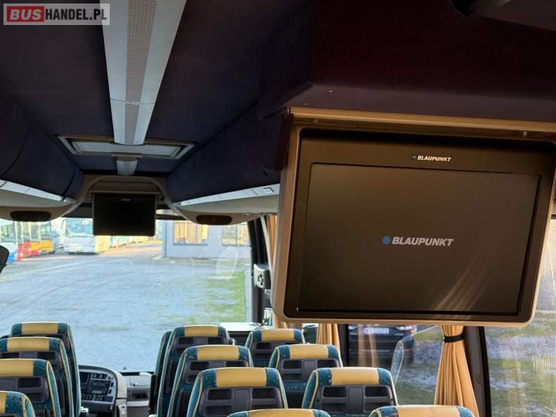 : video, WC, lodówka, caffebar, kabina sypialna, oświetlenie indywidualne, nawiewy dyszowe, siateczki, ABS, ASR, tempomat, retarder, CD, podnóżki, stoliczki, mikrofon, klimatyzacja, radio, regulacja wysokości nadwozia, centralny zamek, podwójne szyby boczne, wspomaganie kierownicy, elektryczne lusterka, fotele odchylane i rozsuwane, DVD, ogrzewanie stacjonarne, ESP
