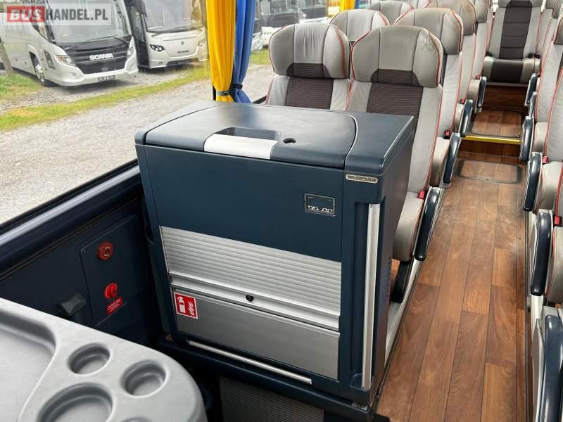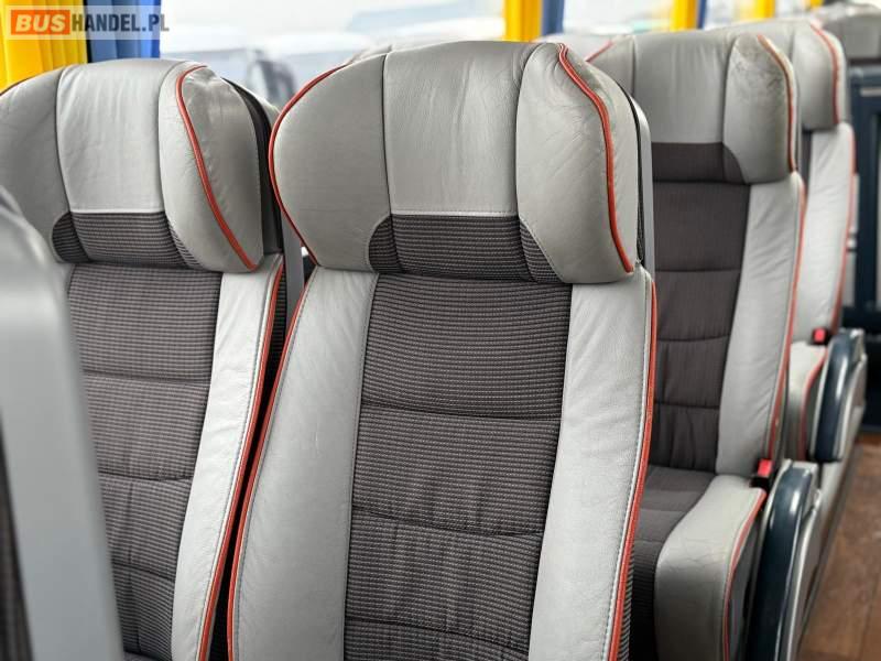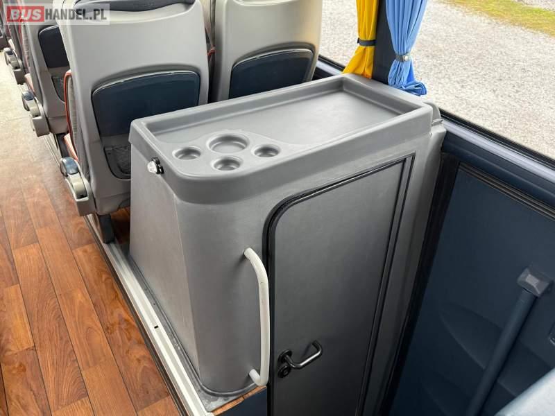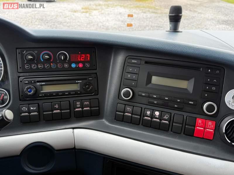 : video, WC, lodówka, caffebar, kabina sypialna, oświetlenie indywidualne, nawiewy dyszowe, siateczki, ABS, ASR, tempomat, retarder, CD, podnóżki, stoliczki, mikrofon, klimatyzacja, radio, regulacja wysokości nadwozia, centralny zamek, podwójne szyby boczne, wspomaganie kierownicy, elektryczne lusterka, fotele odchylane i rozsuwane, DVD, ogrzewanie stacjonarne, ESP