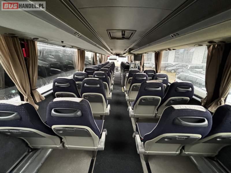 : klimatyzacja, video, WC, lodówka, caffebar, kabina sypialna, fotele odchylane, stoliczki, ABS, ASR, tempomat, retarder, CD, mikrofon, radio, fotele odchylane i rozsuwane, regulacja wysokości nadwozia, wspomaganie kierownicy, DVD, ESP