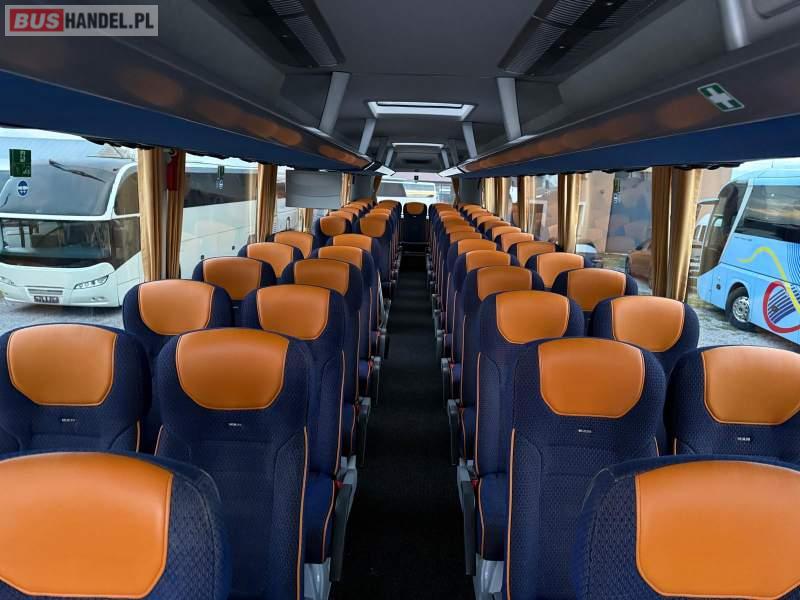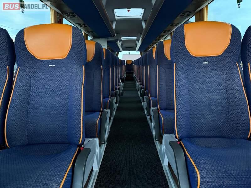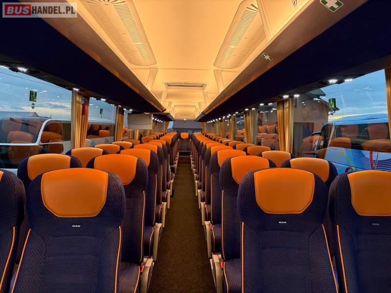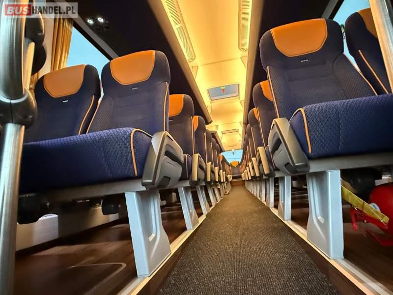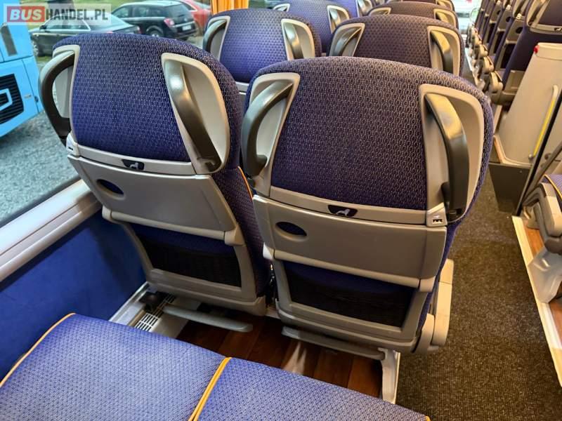 : video, WC, lodówka, kabina sypialna, oświetlenie indywidualne, nawiewy dyszowe, siateczki, ABS, ASR, tempomat, retarder, nawigacja, CD, podnóżki, stoliczki, mikrofon, klimatyzacja, radio, regulacja wysokości nadwozia, centralny zamek, podwójne szyby boczne, wspomaganie kierownicy, elektryczne lusterka, fotele odchylane i rozsuwane, DVD, ogrzewanie stacjonarne, ESP