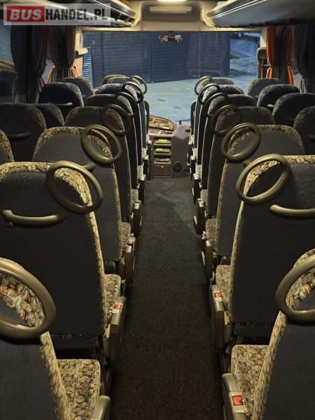 : lodówka, fotele odchylane, oświetlenie indywidualne, nawiewy dyszowe, siateczki, ABS, ASR, tempomat, retarder, podnóżki, stoliczki, mikrofon, klimatyzacja, radio, regulacja wysokości nadwozia, centralny zamek, podwójne szyby boczne, wspomaganie kierownicy, elektryczne lusterka, ogrzewanie stacjonarne