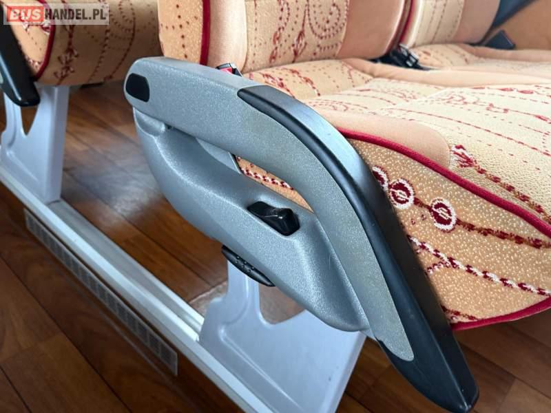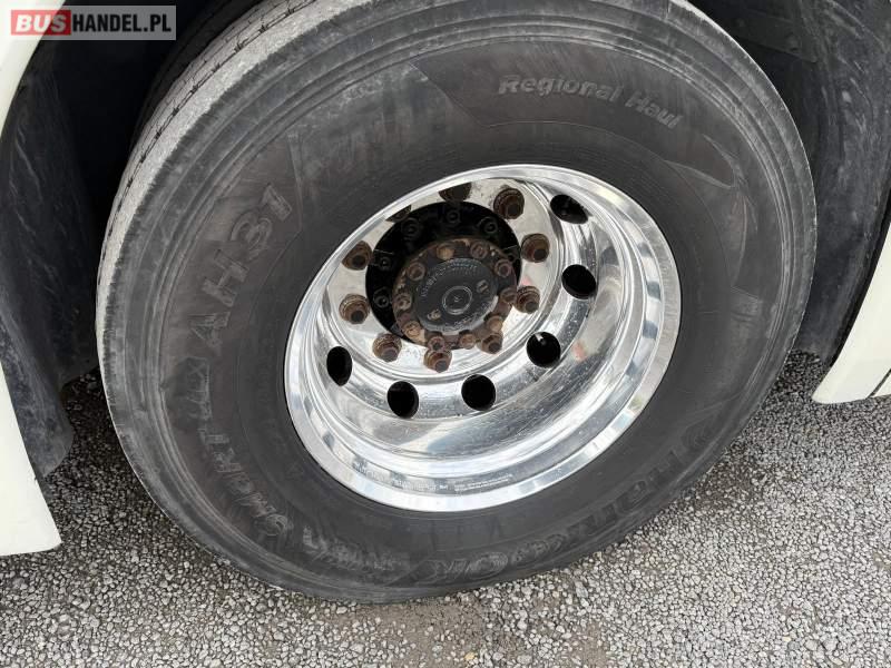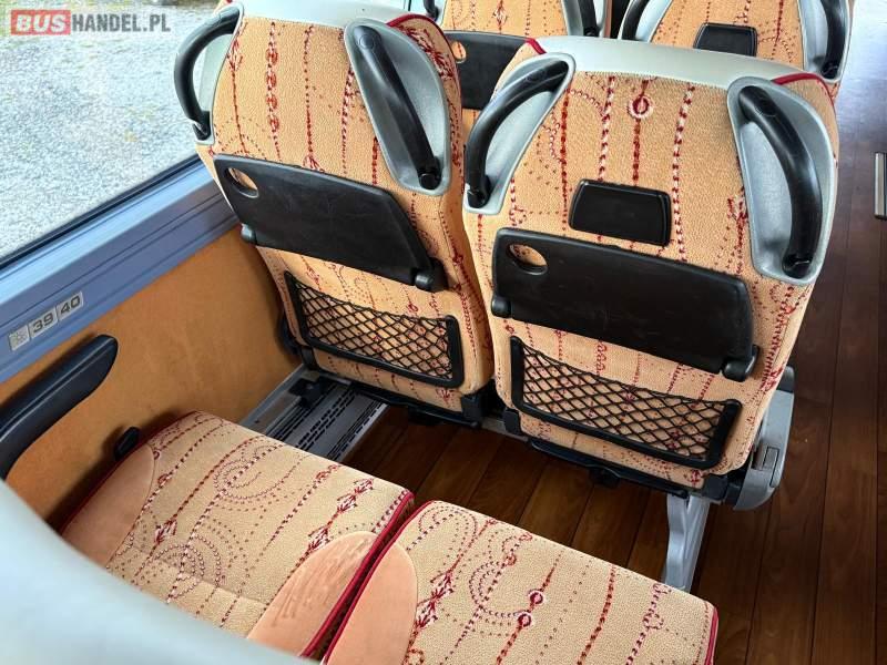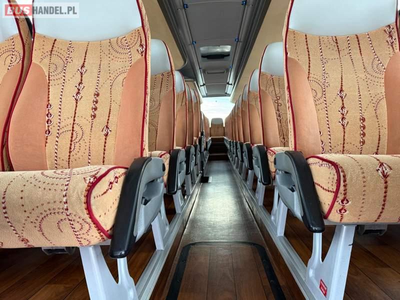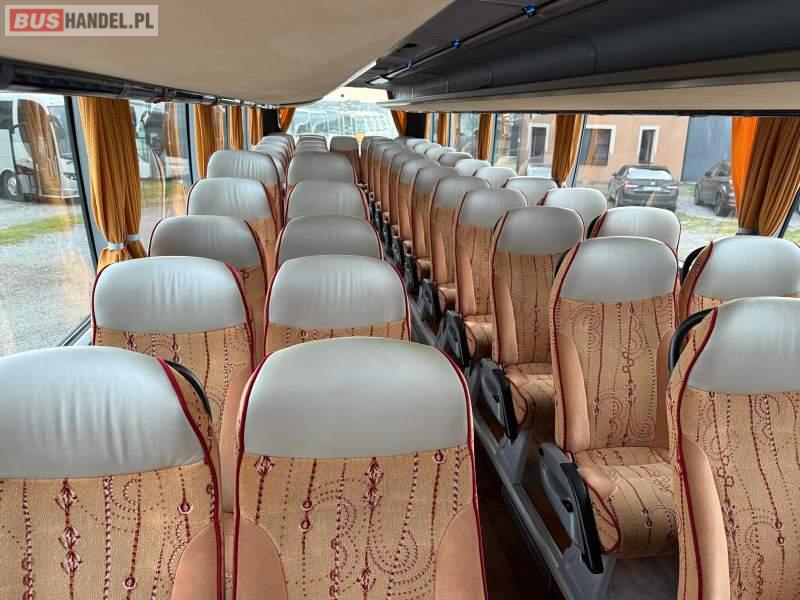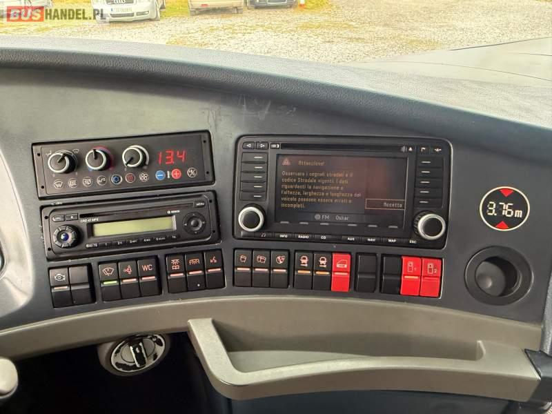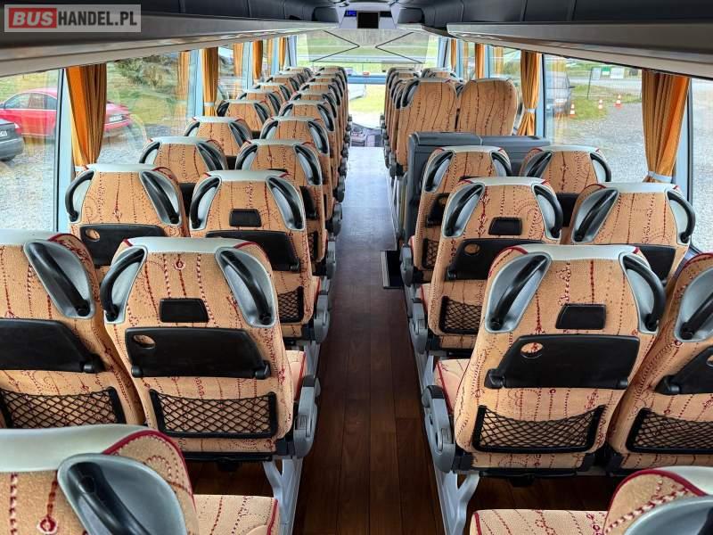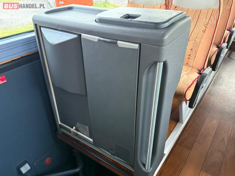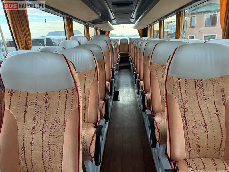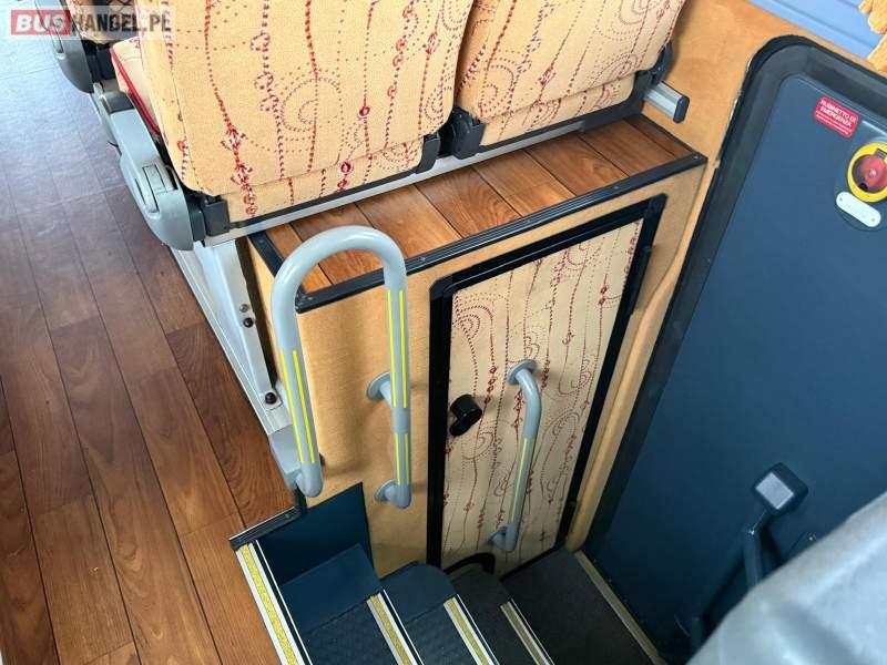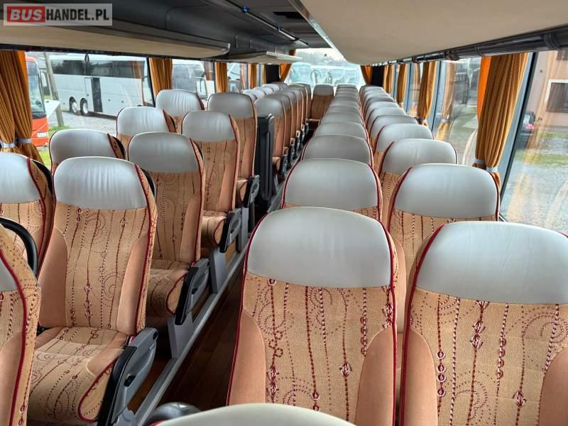 : video, WC, lodówka, caffebar, kabina sypialna, oświetlenie indywidualne, nawiewy dyszowe, siateczki, ABS, ASR, tempomat, retarder, nawigacja, CD, podnóżki, stoliczki, mikrofon, klimatyzacja, radio, regulacja wysokości nadwozia, centralny zamek, podwójne szyby boczne, wspomaganie kierownicy, elektryczne lusterka, aluminiowe felgi, fotele odchylane i rozsuwane, DVD, ogrzewanie stacjonarne, ESP