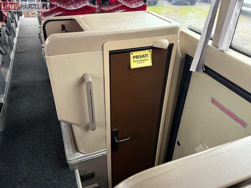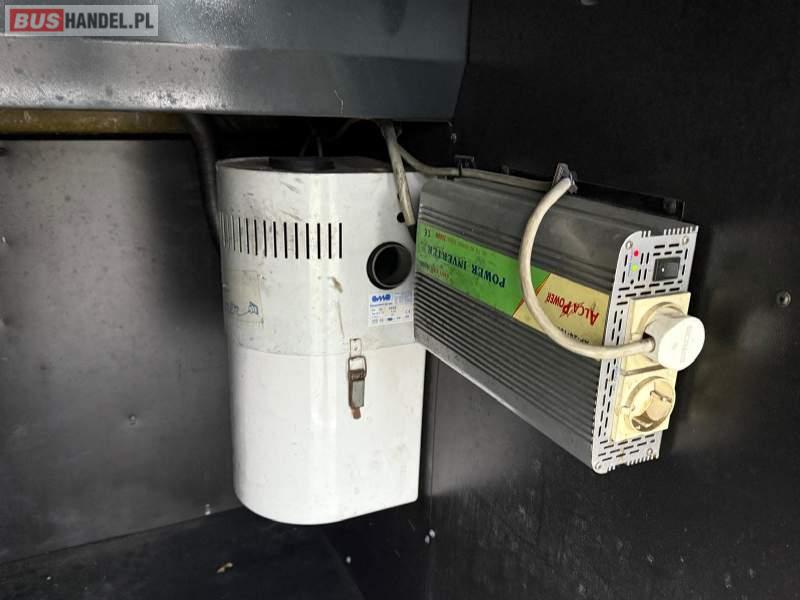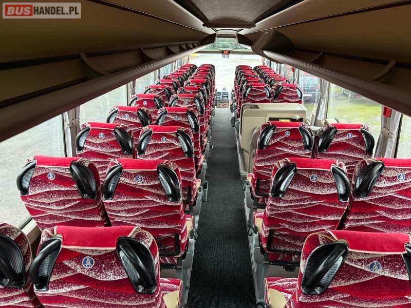 : klimatyzacja, video, WC, lodówka, kabina sypialna, oświetlenie indywidualne, nawiewy dyszowe, podnóżki, siateczki, ABS, ASR, tempomat, retarder, CD, mikrofon, radio, fotele odchylane i rozsuwane, regulacja wysokości nadwozia, centralny zamek, podwójne szyby boczne, wspomaganie kierownicy, aluminiowe felgi, elektryczne lusterka, ogrzewanie stacjonarne, DVD, ESP