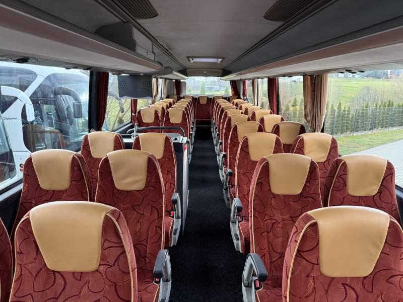 : WC, kabina sypialna, fotele odchylane, nawiewy dyszowe, siateczki, tempomat, stoliczki, mikrofon, klimatyzacja, radio, regulacja wysokości nadwozia, podwójne szyby boczne, wspomaganie kierownicy, elektryczne lusterka, fotele odchylane i rozsuwane, ogrzewanie stacjonarne, ESP