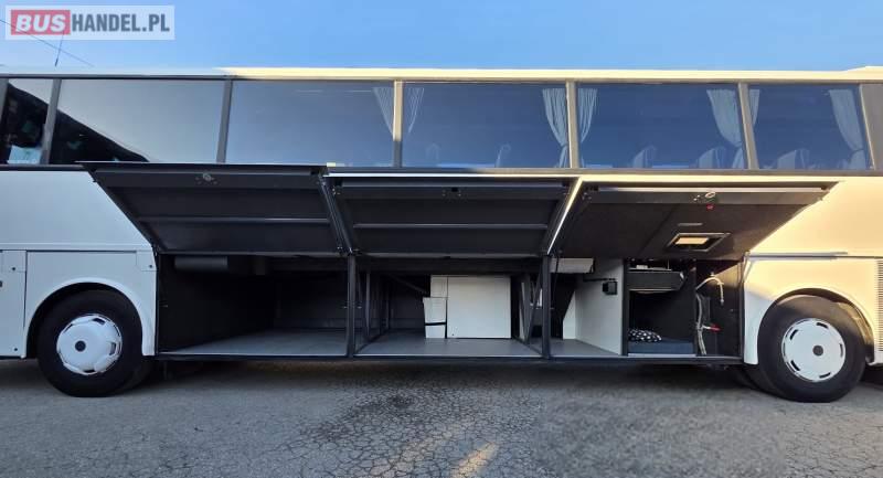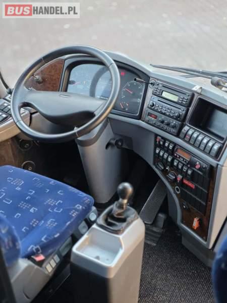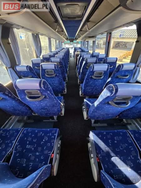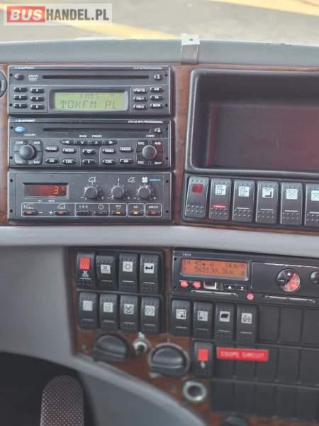 : WC, lodówka, fotele odchylane, oświetlenie indywidualne, nawiewy dyszowe, siateczki, ABS, ASR, tempomat, retarder, podnóżki, stoliczki, mikrofon, klimatyzacja, radio, sejf, regulacja wysokości nadwozia, centralny zamek, podwójne szyby boczne, wspomaganie kierownicy, elektryczne lusterka, ogrzewanie stacjonarne