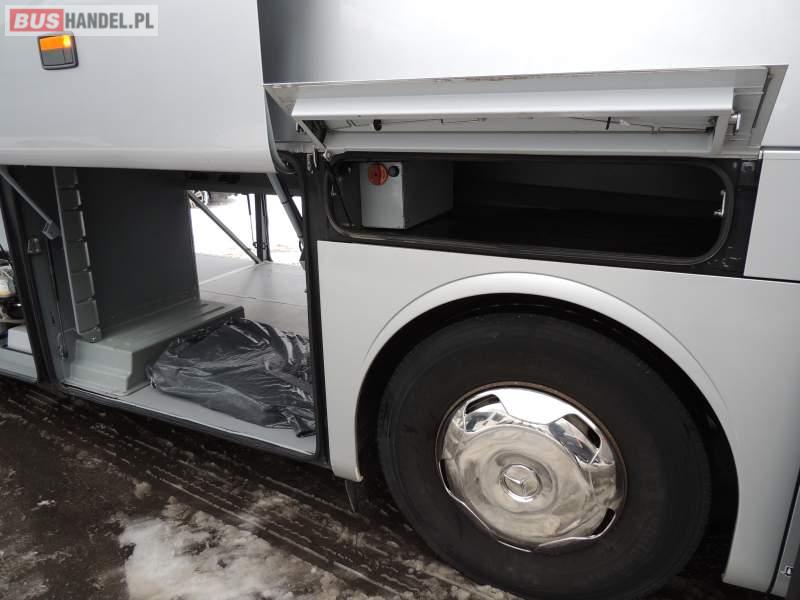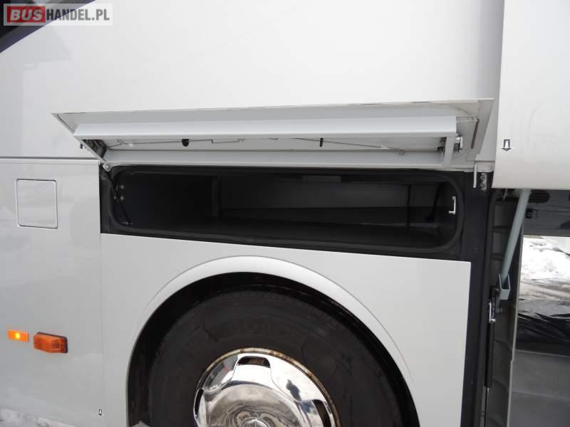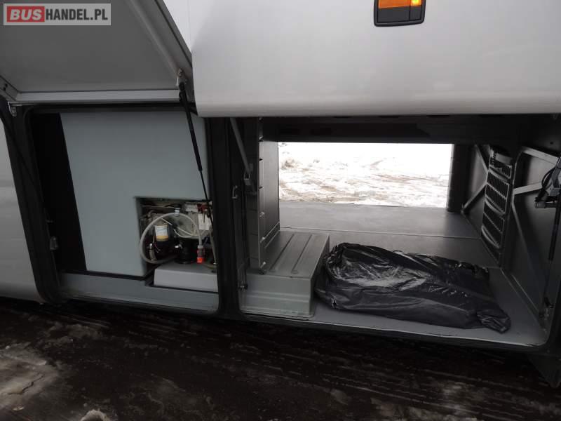 : video, WC, lodówka, oświetlenie indywidualne, nawiewy dyszowe, siateczki, ABS, ASR, tempomat, retarder, CD, podnóżki, mikrofon, klimatyzacja, radio, regulacja wysokości nadwozia, centralny zamek, podwójne szyby boczne, wspomaganie kierownicy, fotele odchylane i rozsuwane, DVD, ogrzewanie stacjonarne, ESP