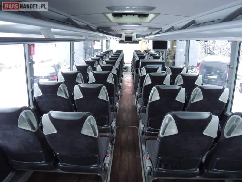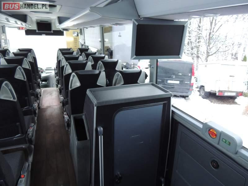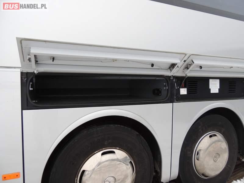 : video, WC, lodówka, oświetlenie indywidualne, nawiewy dyszowe, siateczki, ABS, ASR, tempomat, retarder, CD, podnóżki, mikrofon, klimatyzacja, radio, regulacja wysokości nadwozia, centralny zamek, podwójne szyby boczne, wspomaganie kierownicy, fotele odchylane i rozsuwane, DVD, ogrzewanie stacjonarne, ESP