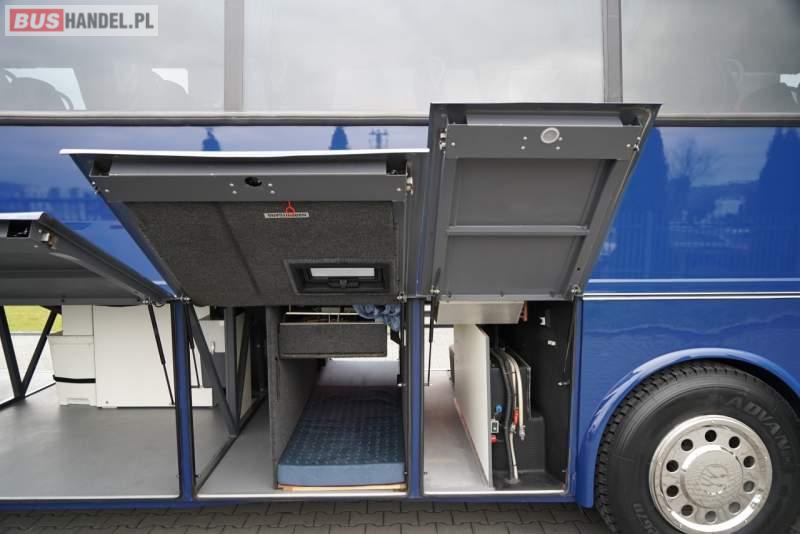 : WC, fotele odchylane, ABS, tempomat, retarder, mikrofon, klimatyzacja, radio, podwójne szyby boczne