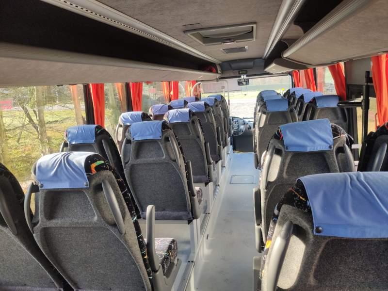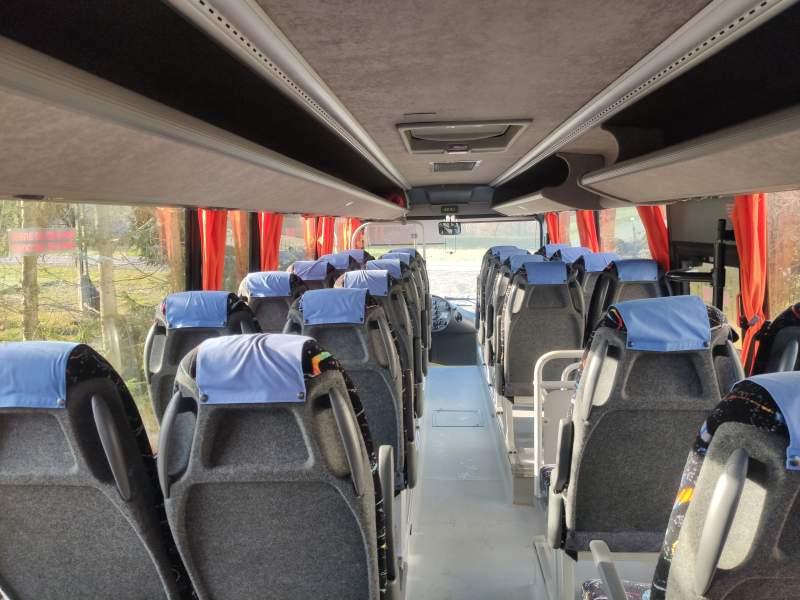 : fotele odchylane, oświetlenie indywidualne, nawiewy dyszowe, ABS, ASR, retarder, klimatyzacja, radio, wspomaganie kierownicy, elektryczne lusterka, ogrzewanie stacjonarne