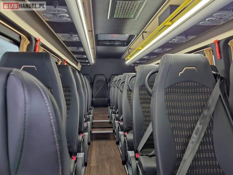 Fabrycznie nowy, dostępny od ręki, maksymalnie wydłużona wersja, 27 miejsc siedzących, możliwość rejestracji na 8 miejsc stojących, Klimatyzacja fabryczna Mercedes klimatronic dla kierowcy plus dodatkowa klimatyzacja na osobnym kompresorze firmy Webasto dla pasażerów z rozprowadzeniem w półkach, dwie półki z indywidualnym oświetleniem, nawiewami i gniazdami USB, ogrzewanie postojowe suche Webasto, dodatkowa nagrzewnica, regulowane fotele na podeście, pogłębiany bagażnik, obniżany stopień wejściowy, lifting zewnętrzny spoilery, kamera cofania, duże radio, reflektory ledowe, podwójne szyby boczne, systemy asystujące kierowcę, możliwość załatwienia kredytu lub leasingu, więcej info 664 712 291 Sprzedający: