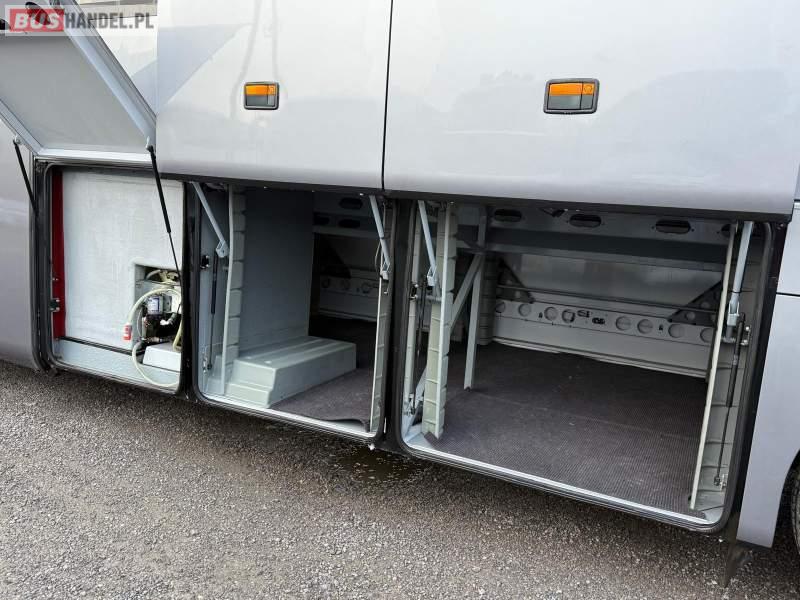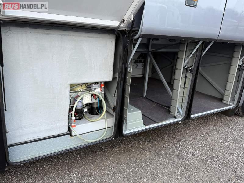 : klimatyzacja, video, WC, lodówka, oświetlenie indywidualne, nawiewy dyszowe, fotele odchylane, podnóżki, stoliczki, siateczki, ABS, ASR, tempomat, retarder, CD, mikrofon, radio, regulacja wysokości nadwozia, centralny zamek, podwójne szyby boczne, wspomaganie kierownicy, aluminiowe felgi, elektryczne lusterka, ogrzewanie stacjonarne, DVD, ESP