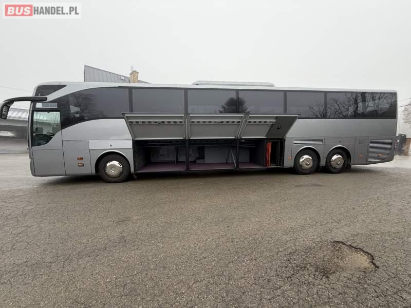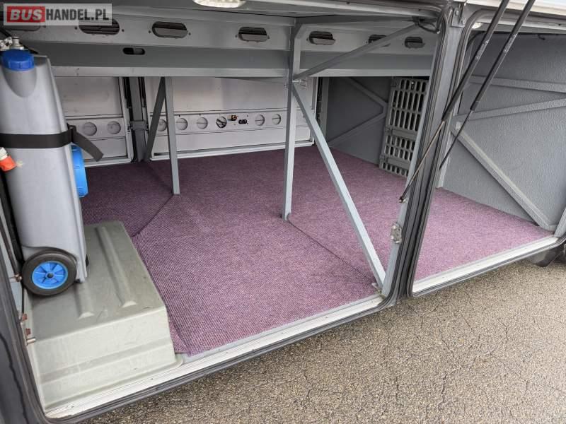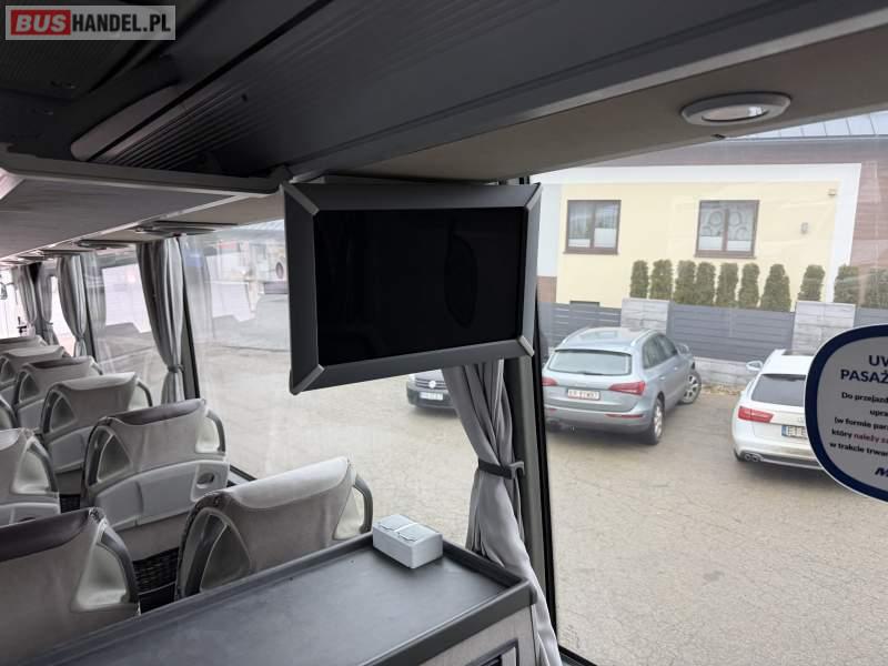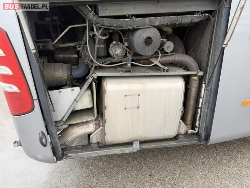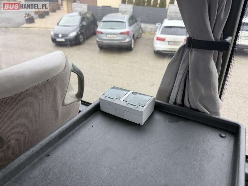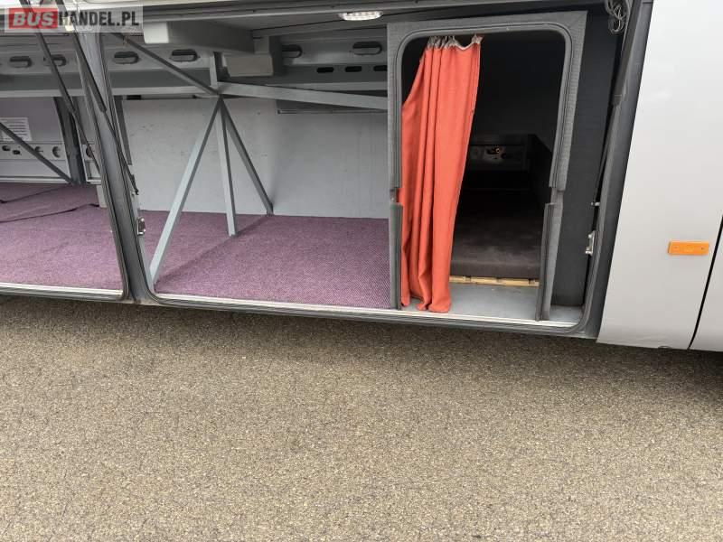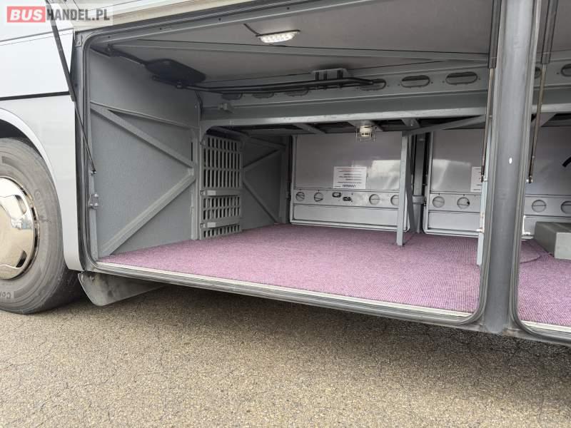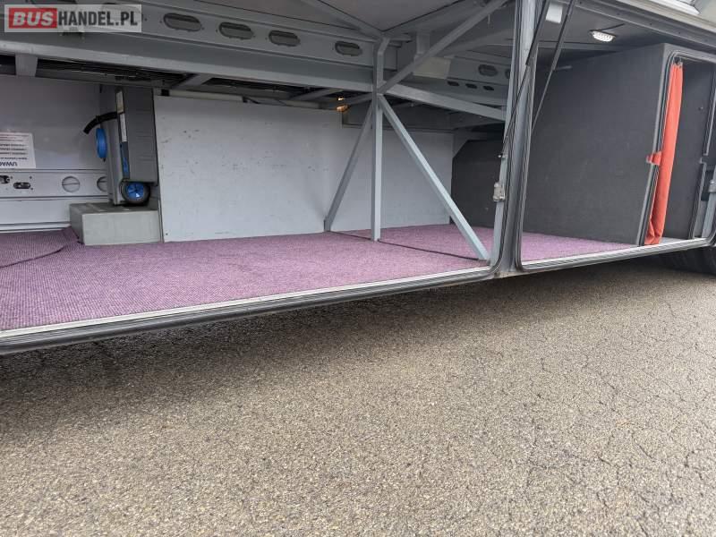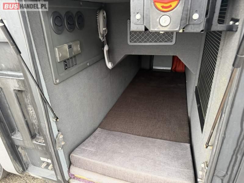 : klimatyzacja, WC, lodówka, caffebar, kabina sypialna, oświetlenie indywidualne, nawiewy dyszowe, podnóżki, stoliczki, siateczki, ABS, ASR, tempomat, retarder, mikrofon, radio, fotele odchylane i rozsuwane, sejf, regulacja wysokości nadwozia, centralny zamek, podwójne szyby boczne, wspomaganie kierownicy, elektryczne lusterka, ogrzewanie stacjonarne, DVD, ESP