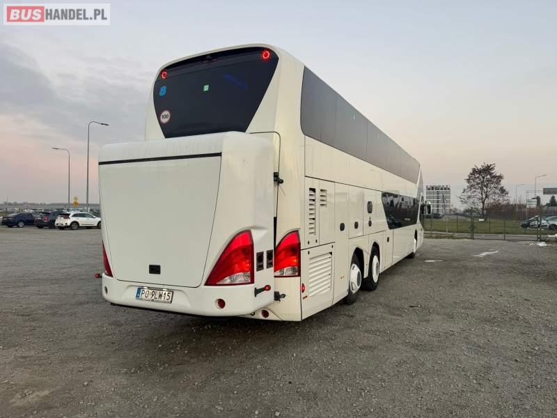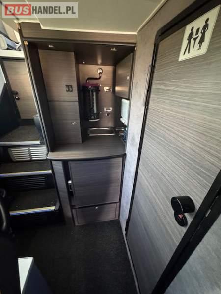 : video, WC, caffebar, oświetlenie indywidualne, siateczki, ABS, ASR, tempomat, retarder, telefon, podnóżki, stoliczki, radio, regulacja wysokości nadwozia, centralny zamek, podwójne szyby boczne, wspomaganie kierownicy, fotele odchylane i rozsuwane, DVD, ogrzewanie stacjonarne, ESP
