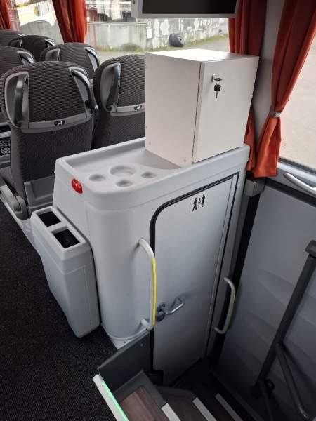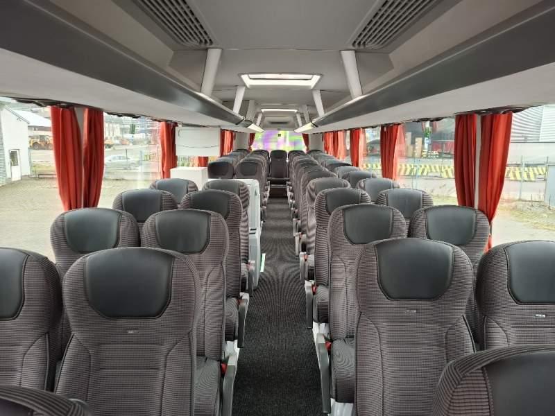 : klimatyzacja, WC, lodówka, caffebar, kabina sypialna, oświetlenie indywidualne, nawiewy dyszowe, podnóżki, stoliczki, siateczki, ABS, ASR, tempomat, retarder, nawigacja, mikrofon, radio, fotele odchylane i rozsuwane, sejf, regulacja wysokości nadwozia, centralny zamek, podwójne szyby boczne, wspomaganie kierownicy, elektryczne lusterka, ogrzewanie stacjonarne, hak holowniczy, ESP