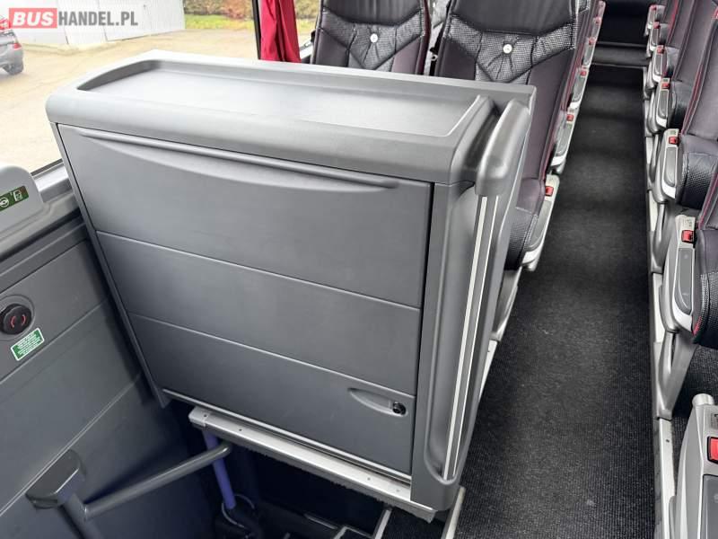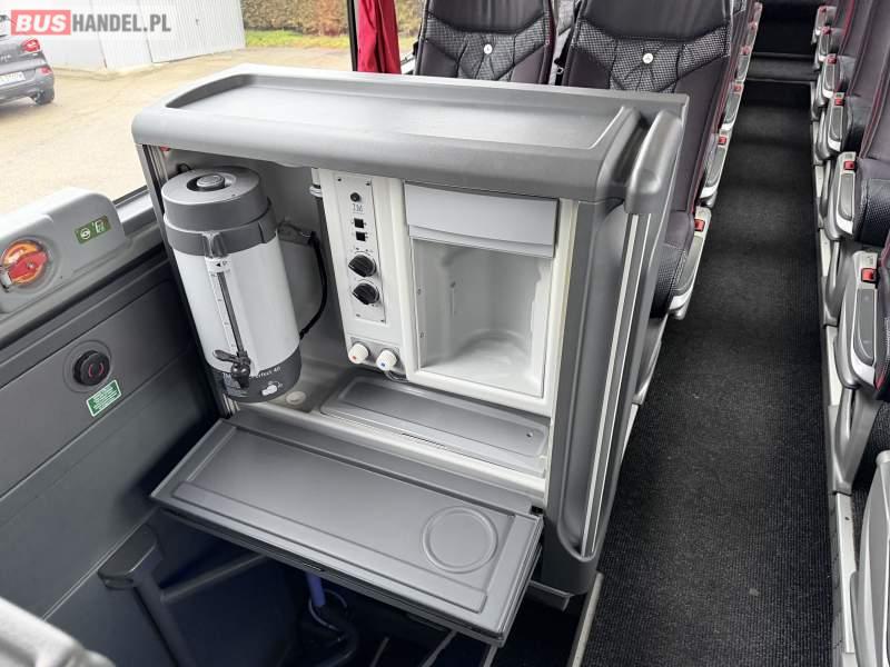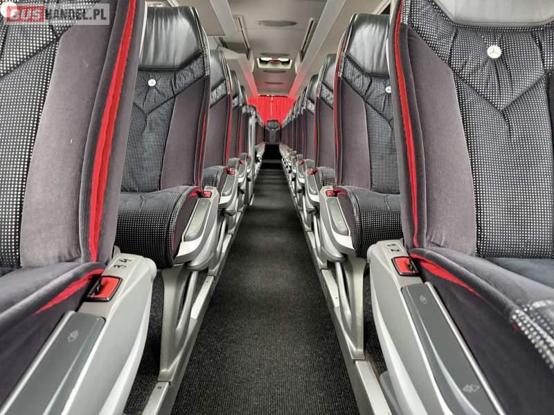 : video, WC, lodówka, caffebar, kabina sypialna, fotele odchylane, oświetlenie indywidualne, nawiewy dyszowe, siateczki, ABS, ASR, tempomat, retarder, podnóżki, stoliczki, mikrofon, klimatyzacja, radio, sejf, regulacja wysokości nadwozia, centralny zamek, podwójne szyby boczne, wspomaganie kierownicy, elektryczne lusterka, fotele odchylane i rozsuwane, DVD, ogrzewanie stacjonarne, ESP