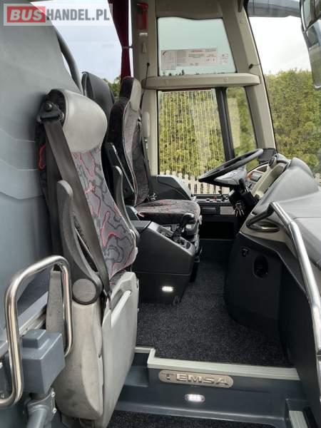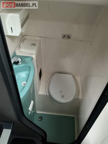 : WC, lodówka, kabina sypialna, fotele odchylane, oświetlenie indywidualne, nawiewy dyszowe, siateczki, ABS, ASR, tempomat, retarder, nawigacja, CD, podnóżki, stoliczki, mikrofon, klimatyzacja, radio, regulacja wysokości nadwozia, centralny zamek, podwójne szyby boczne, wspomaganie kierownicy, elektryczne lusterka, DVD, ogrzewanie stacjonarne, ESP