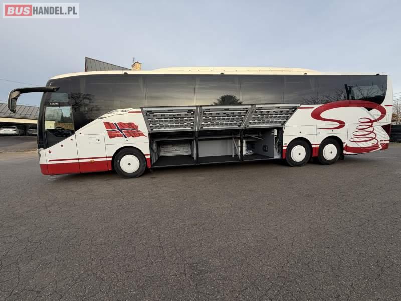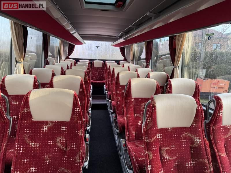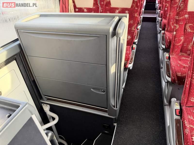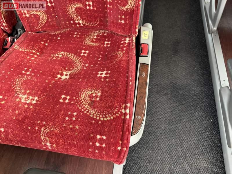 : WC, lodówka, caffebar, oświetlenie indywidualne, nawiewy dyszowe, siateczki, ABS, ASR, tempomat, retarder, podnóżki, stoliczki, mikrofon, klimatyzacja, sejf, regulacja wysokości nadwozia, centralny zamek, podwójne szyby boczne, wspomaganie kierownicy, elektryczne lusterka, fotele odchylane i rozsuwane, DVD, ogrzewanie stacjonarne, ESP