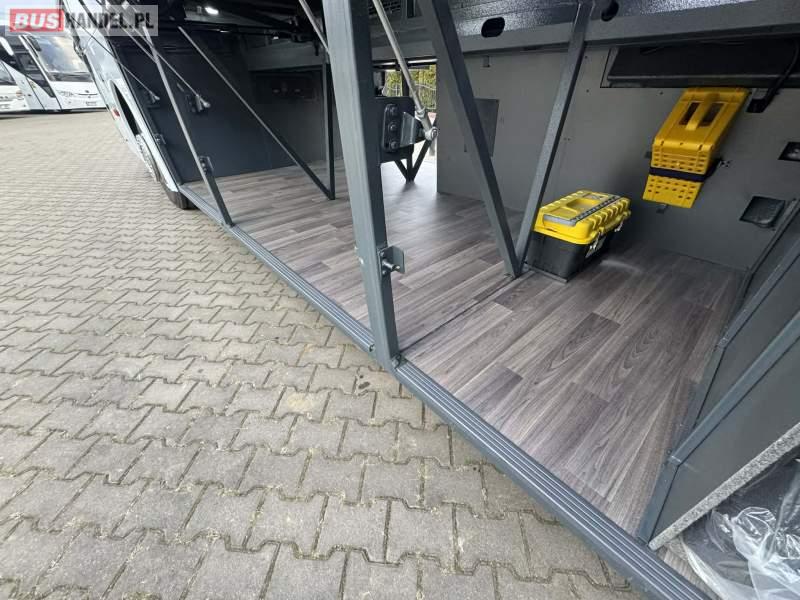 : klimatyzacja, video, WC, lodówka, kabina sypialna, oświetlenie indywidualne, nawiewy dyszowe, podnóżki, stoliczki, siateczki, ABS, ASR, tempomat, retarder, telefon, CD, mikrofon, radio, fotele odchylane i rozsuwane, kuchenka mikrofalowa, regulacja wysokości nadwozia, centralny zamek, podwójne szyby boczne, wspomaganie kierownicy, aluminiowe felgi, elektryczne lusterka, ogrzewanie stacjonarne, DVD, ESP