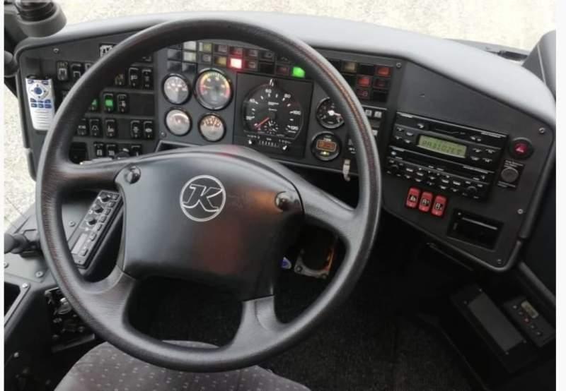 : WC, lodówka, fotele odchylane, nawiewy dyszowe, siateczki, ABS, ASR, tempomat, retarder, nawigacja, CD, stoliczki, mikrofon, klimatyzacja, radio, sejf, regulacja wysokości nadwozia, podwójne szyby boczne, wspomaganie kierownicy, elektryczne lusterka, fotele odchylane i rozsuwane, ogrzewanie stacjonarne, hak holowniczy