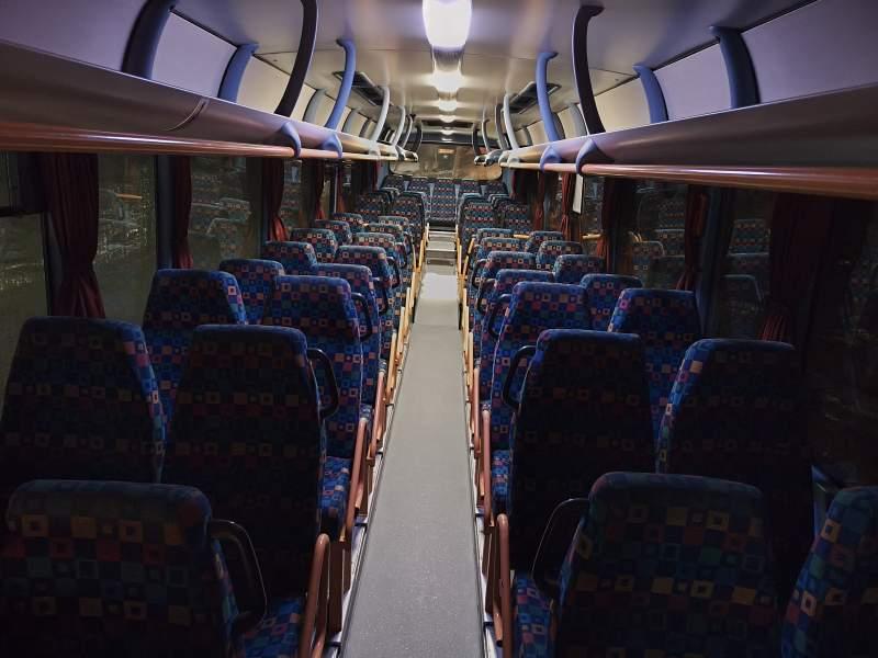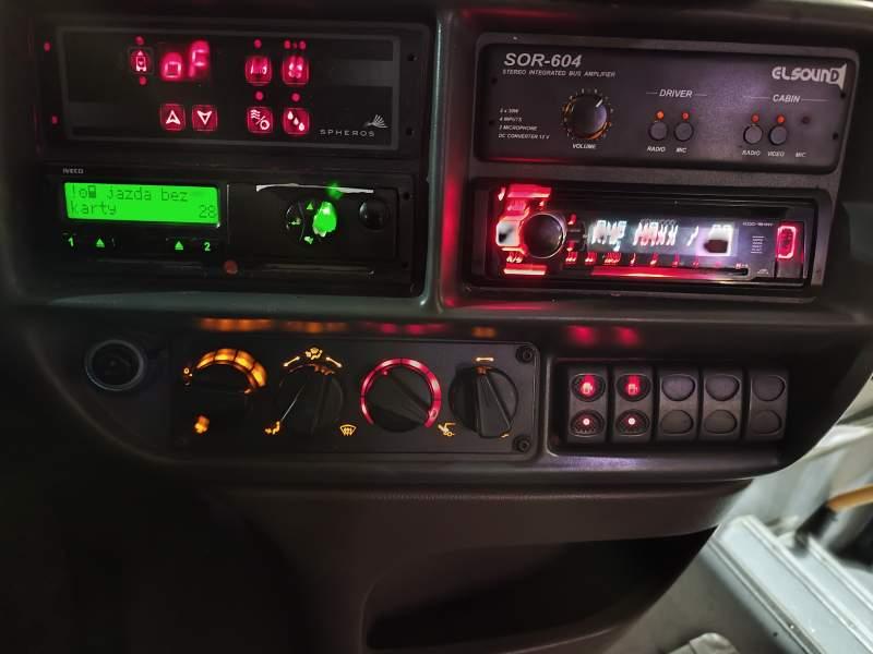 : oświetlenie indywidualne, nawiewy dyszowe, ABS, ASR, tempomat, retarder, fotele nieodchylane, mikrofon, klimatyzacja, radio, centralny zamek, podwójne szyby boczne, wspomaganie kierownicy, elektryczne lusterka, ogrzewanie stacjonarne, ESP
