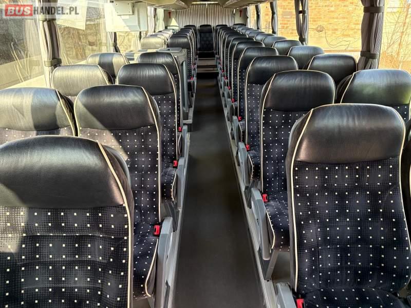 : video, WC, lodówka, caffebar, kabina sypialna, oświetlenie indywidualne, nawiewy dyszowe, siateczki, ABS, ASR, tempomat, retarder, CD, podnóżki, stoliczki, mikrofon, klimatyzacja, radio, regulacja wysokości nadwozia, centralny zamek, podwójne szyby boczne, wspomaganie kierownicy, elektryczne lusterka, fotele odchylane i rozsuwane, DVD, ogrzewanie stacjonarne, ESP