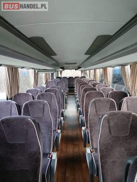 : video, WC, kabina sypialna, fotele odchylane, siateczki, ABS, ASR, tempomat, retarder, CD, podnóżki, stoliczki, mikrofon, klimatyzacja, radio, regulacja wysokości nadwozia, podwójne szyby boczne, elektryczne lusterka, DVD, ESP